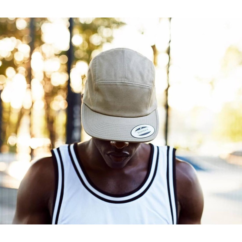 5 panneaux. Profil bas. Forme spécifique pour jockey et cyclistes. Œillets métalliques sur les côtés. Fermeture clip.