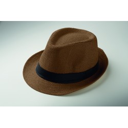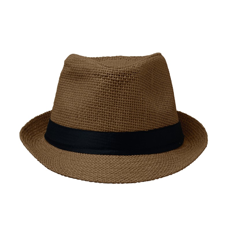 Chapeau de paille avec bande de polyester noir. Pour les commandes non imprimées, la bande sera fournie séparément des chapeaux.