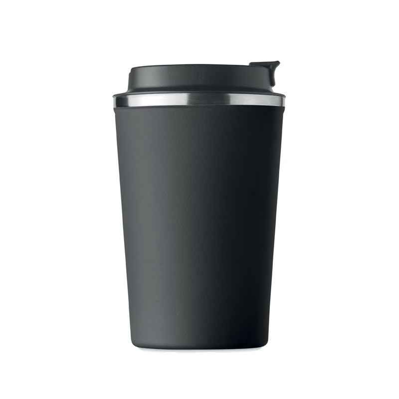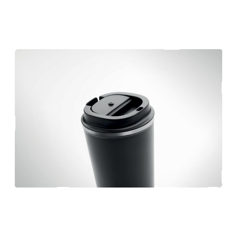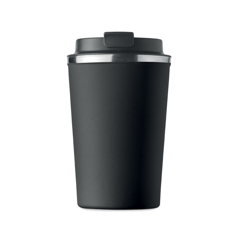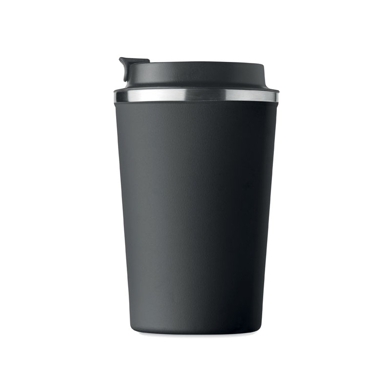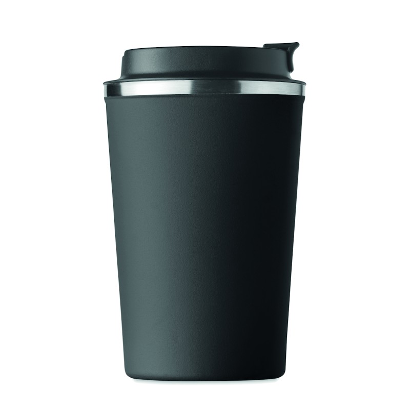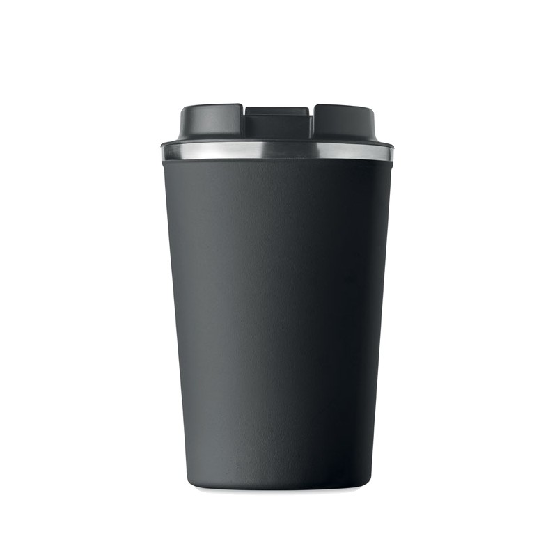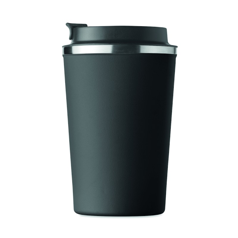 Gobelet en acier inoxydable à double paroi avec couvercle en PP. Contenance 350 ml. Sans fuite.
