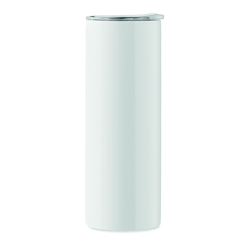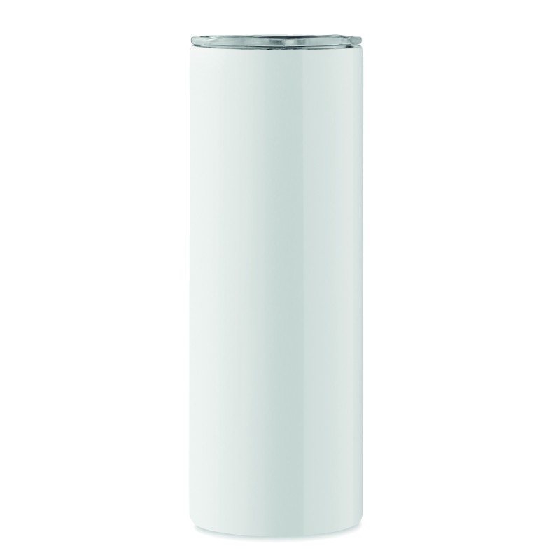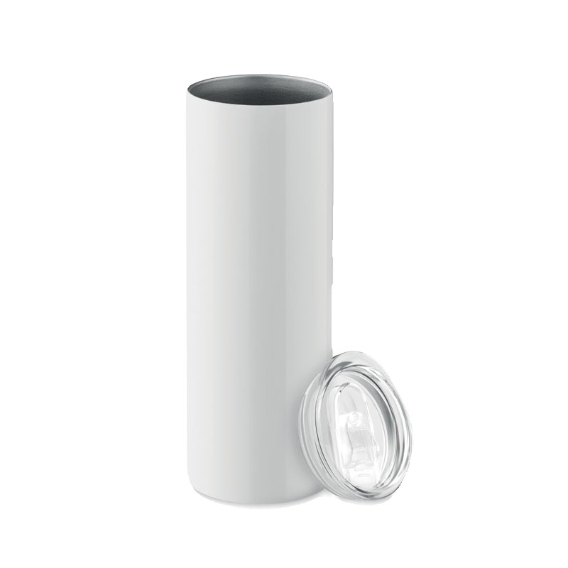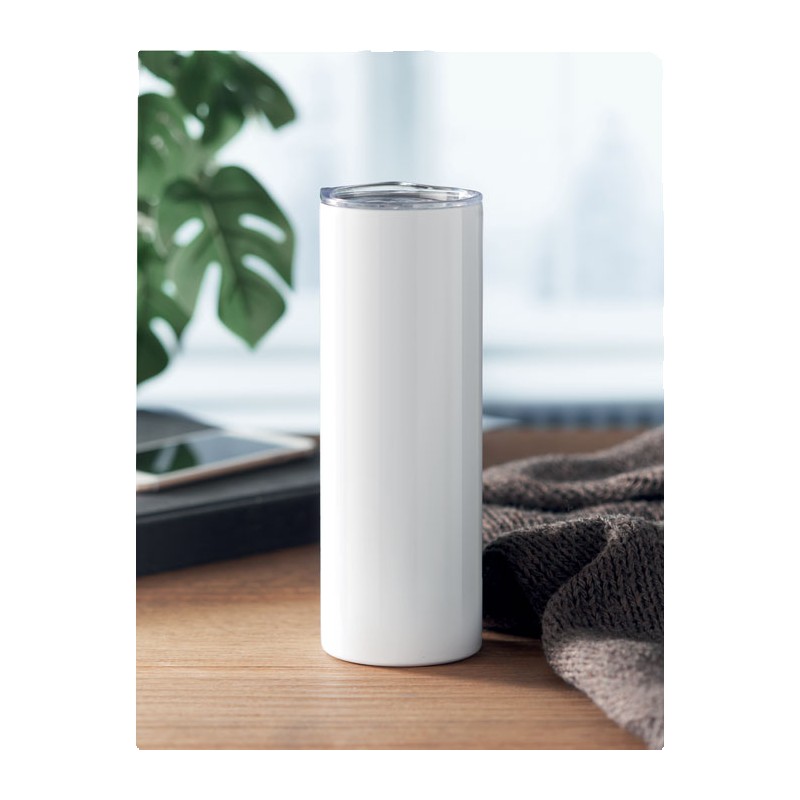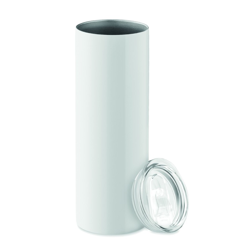Gobelet en acier inoxydable à double paroi avec revêtement spécial pour impression par sublimation. Couvercle en PP Capacité : 590 ml.