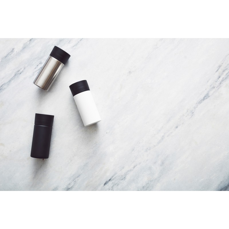 Une solution simple pour améliorer votre quotidien est de vous procurer une tasse à emporter qui peut être ouverte d'une seule main. Toujours en déplacement ? Alors cette tasse sera votre préférée, elle préserve la fraîcheur et la chaleur pendant 6 heures. Elle est fabriquée en acier 18/8 et, grâce à ce choix de matériau, ni l'odeur ni le goût ne resteront dans la tasse. Laver à la main uniquement.