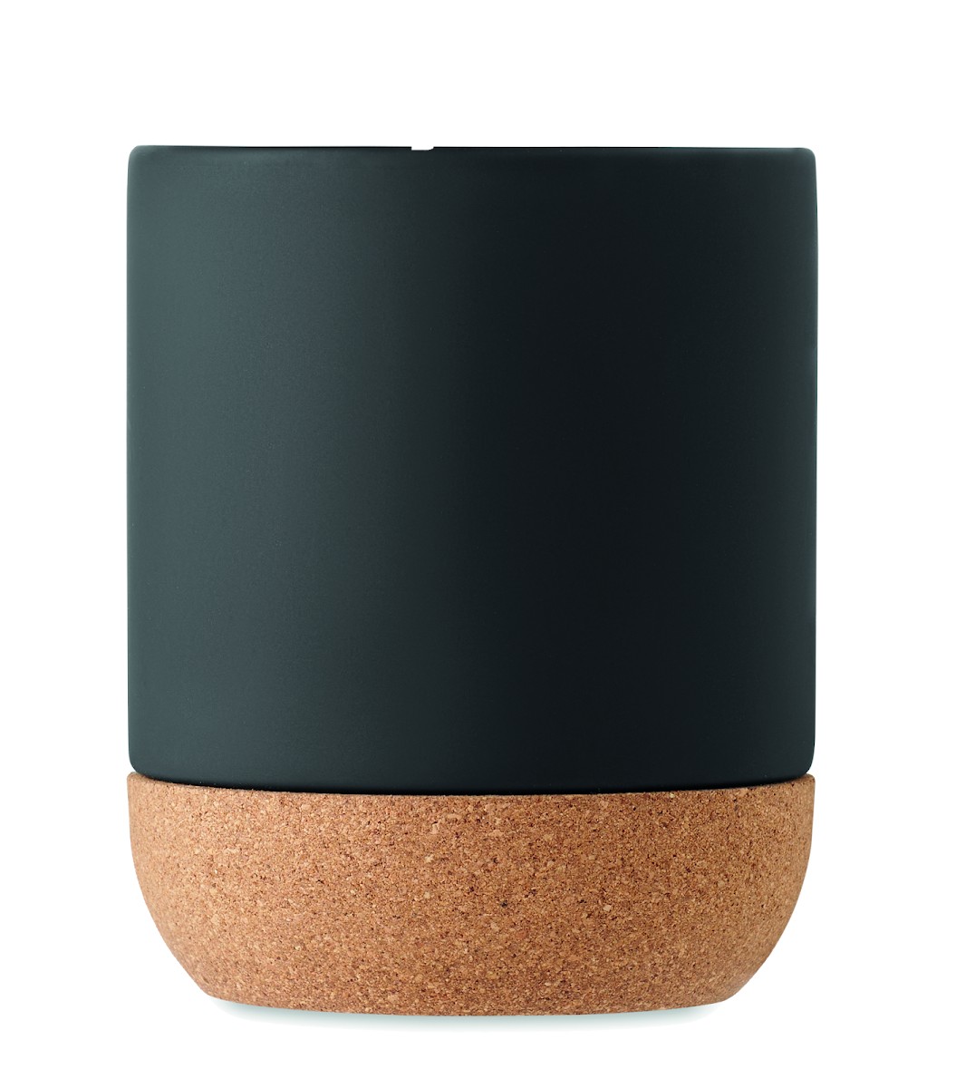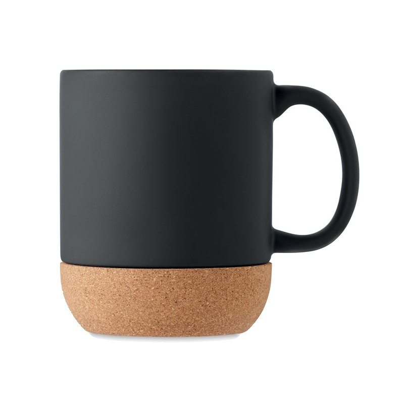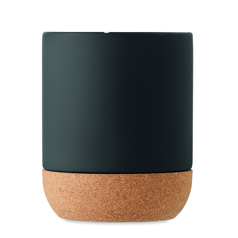 Tasse en céramique mate avec base en liège. Capacité : 300 ml. Le liège est un matériau 100% naturel. En raison de sa structure et de la porosité de sa surface, le résultat final de l'impression par article peut présenter des différences. Avec un revêtement spécial pour la gravure au laser