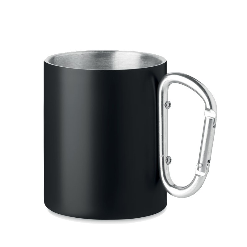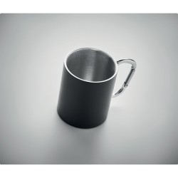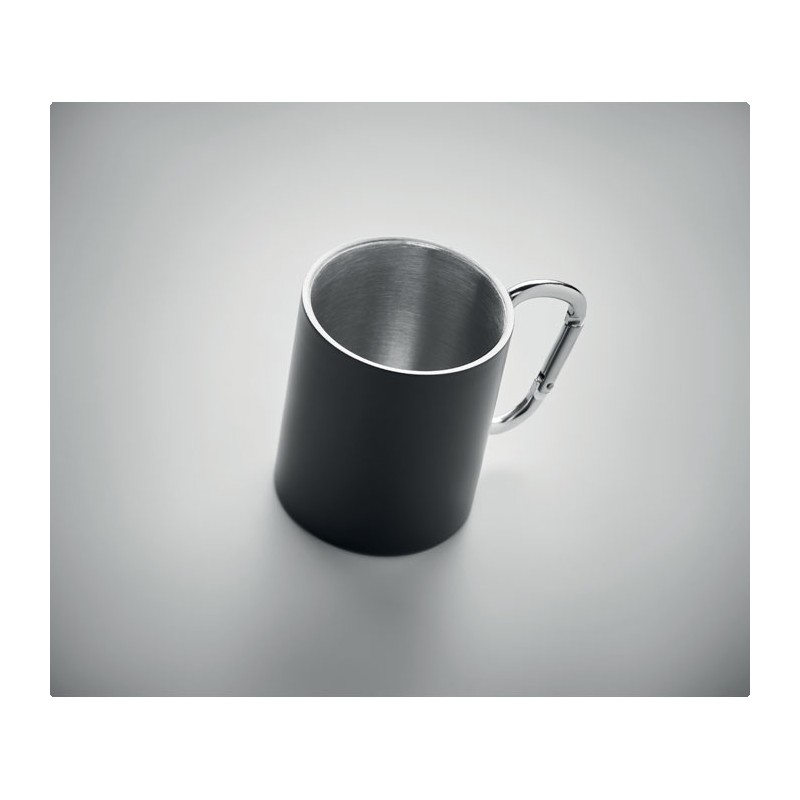 Tasse en acier inoxydable à double paroi, avec poignée mousqueton. Capacité : 300 ml.