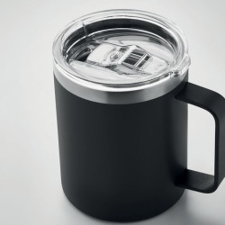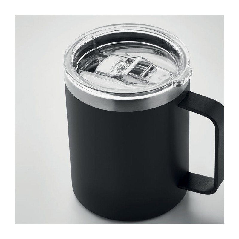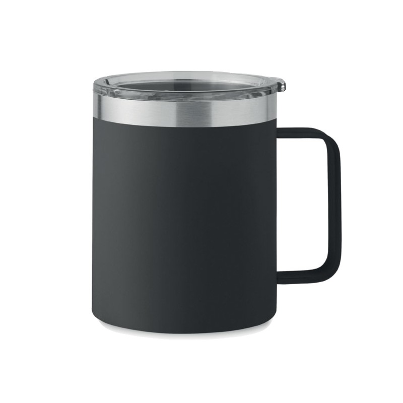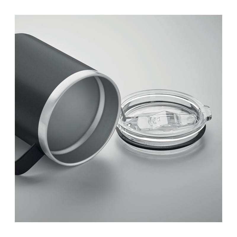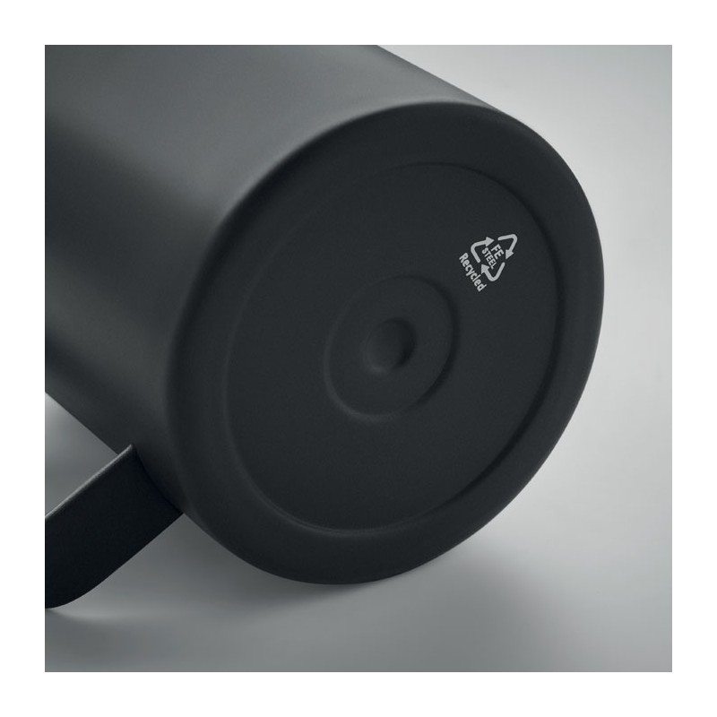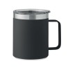 Gobelet à double paroi en acier inoxydable recyclé (90% d'acier inoxydable recyclé et 10% d'acier inoxydable) avec couvercle à curseur coulissant. Capacité : 300 ml.