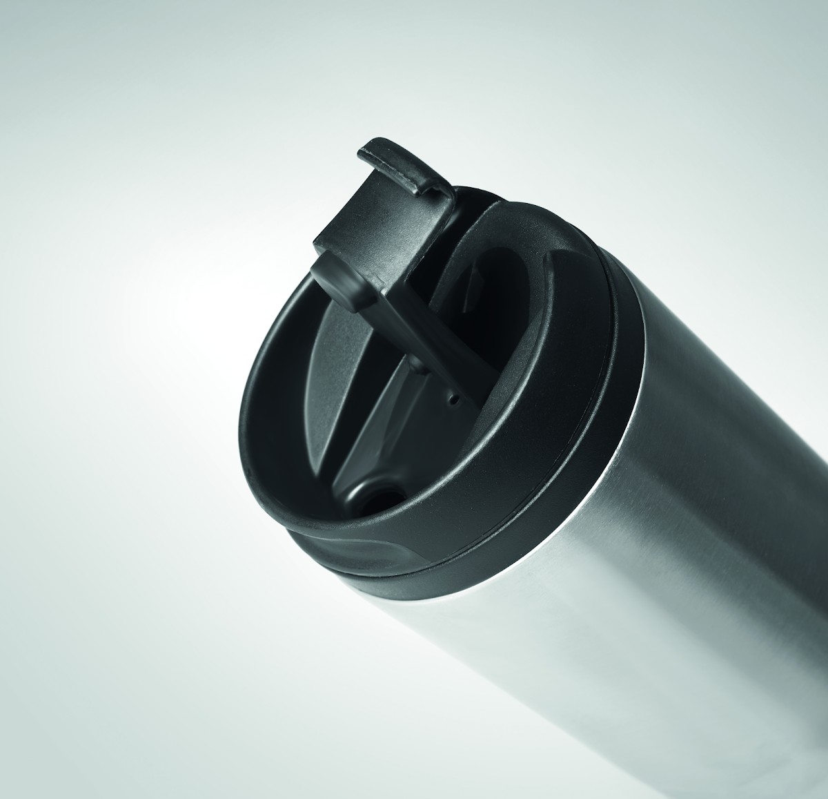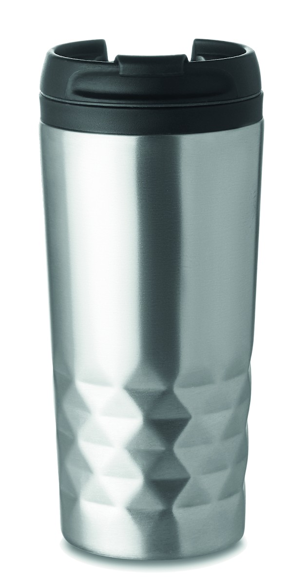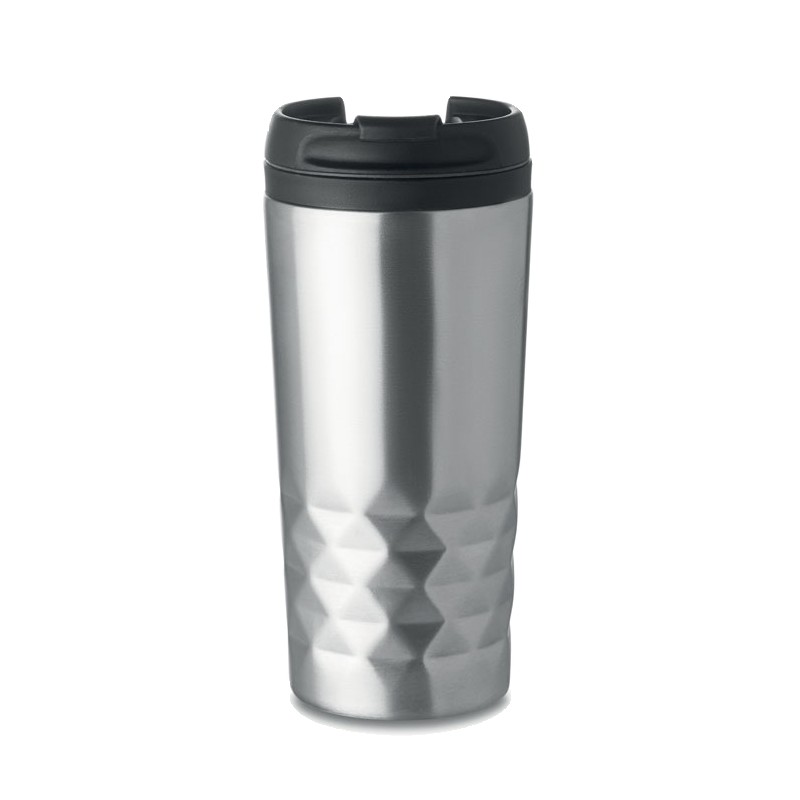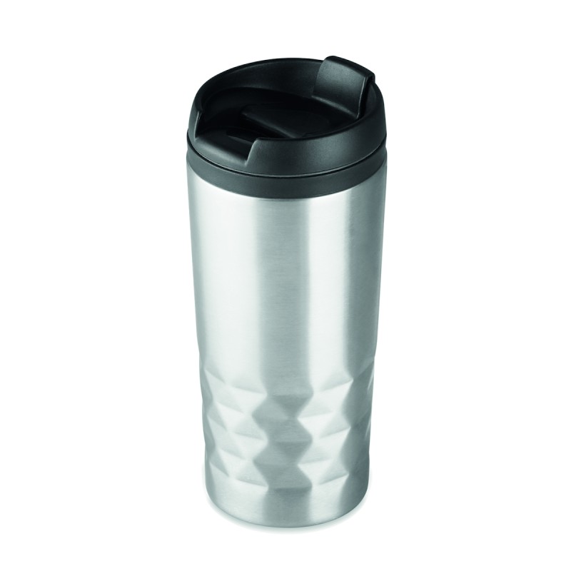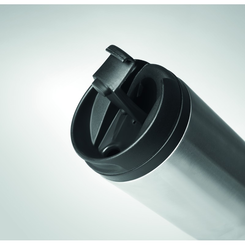 Tasse de voyage à double paroi en acier inoxydable à double paroi. Intérieur en PP. Contenance 280 ml.