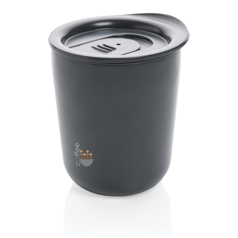Mug 250ml à double paroi, intérieur en PP et extérieur en acier inoxydable, et traité avec Biomaster, un agent antimicrobien qui fournit une deuxième ligne de défense contre les bactéries. Le corps et le couvercle sont tous deux traités et c'est DANS le produit, et non SUR le produit, que vous obtiendrez une protection permanente. Le mug répond aux normes ISO 22196 en matière de protection antibactérienne. La technologie Biomaster n'affecte pas le recyclage du produit. Le produit contient aussi la technologie Verimaster, un traceur unique qui permet d'attester que le produit a bien été traité avec l'antibactérien Biomaster.
