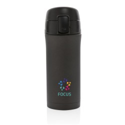 Mug 300ml à double paroi en acier inoxydable 201 avec finition moderne, métallique mat. Le bouchon est verrouillable, antifuite et facile à nettoyer. Garde les boissons chaudes jusqu'à 5h et froides jusqu'à 15h. Passe au lave-vaisselle.