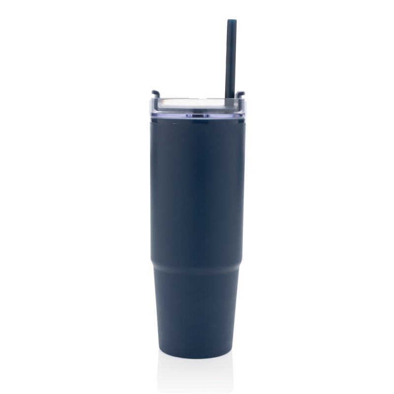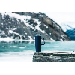 Mug 900ml en plastique à double paroi Tana, fabriqué à partir de 42 % de matériaux recyclés pour une hydratation à faible impact. Que vous travailliez, fassiez de l'exercice ou voyagiez, ce gobelet est votre compagnon idéal. Le couvercle avancé est doté d'un bouchon rotatif à trois positions : une paille anti-éclaboussures, un bec verseur et un couvercle. La poignée ergonomique avec inserts confort-grip facilite le transport, et la base fine s'adapte à la plupart des porte-gobelets de voiture. Laver à la main uniquement. Contenu recyclé total : 42 % sur la base du poids total de l'article. Sans BPA. Emballage cadeau en kraft certifié FSC® inclus.
