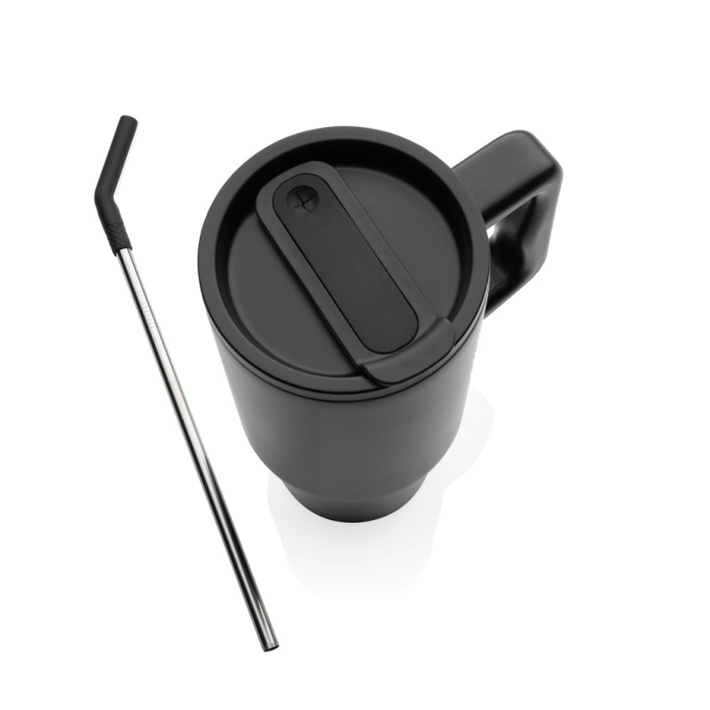 Mug 900ml à double paroi fabriqué en acier inoxydable recyclé durable, équipé d'un couvercle, d'une paille et d'un embout de paille en silicone. Polyvalent et isotherme, il convient aussi bien aux boissons chaudes (5 heures) qu'aux boissons froides (15 heures). Le couvercle à vis a une double fonction : il offre un bec verseur pratique ou la possibilité d'utiliser une paille. Découvrez sa contenance - ni trop grande, ni trop petite. Sa poignée confortable et sa base mince lui permettent de s'adapter parfaitement à la plupart des porte-gobelets, vous assurant ainsi de rester hydrate quel que soit votre activité. Pour un entretien optimal, il est recommandé de le laver à la main. Fabriqué avec RCS (Recycled Claim Standard). La certification RCS garantit une chaîne d'approvisionnement entièrement certifiée pour les matériaux recyclés. Contenu recyclé total : 70 % sur la base du poids total de l'article. Sans BPA.