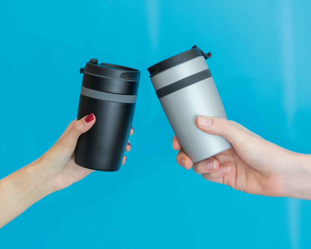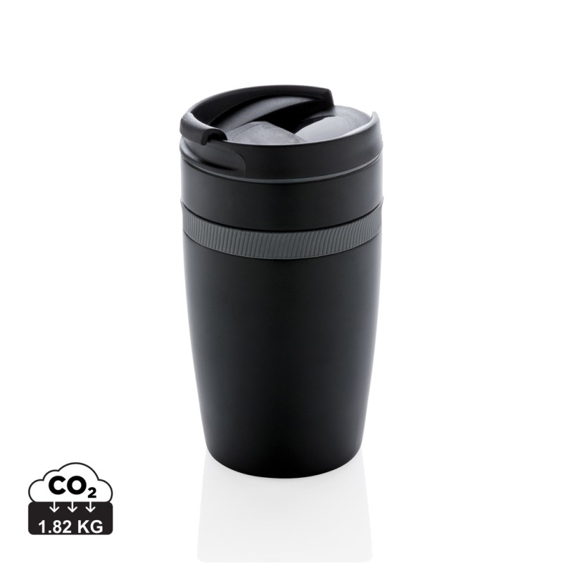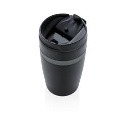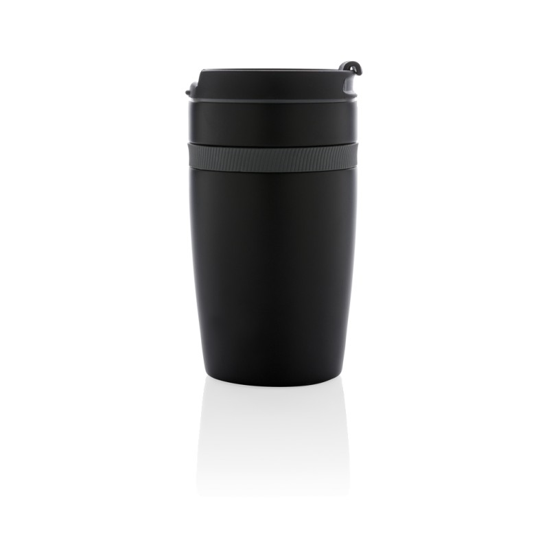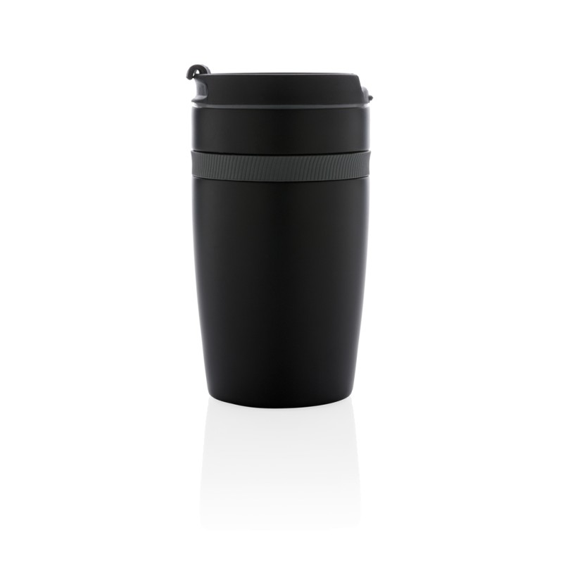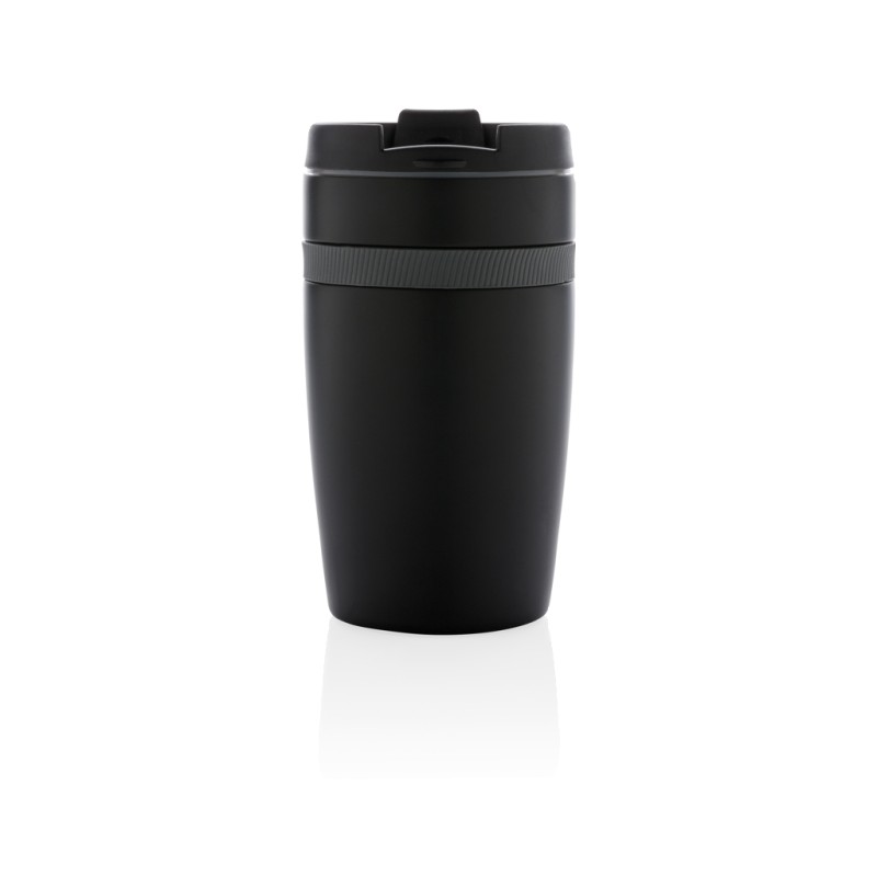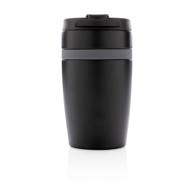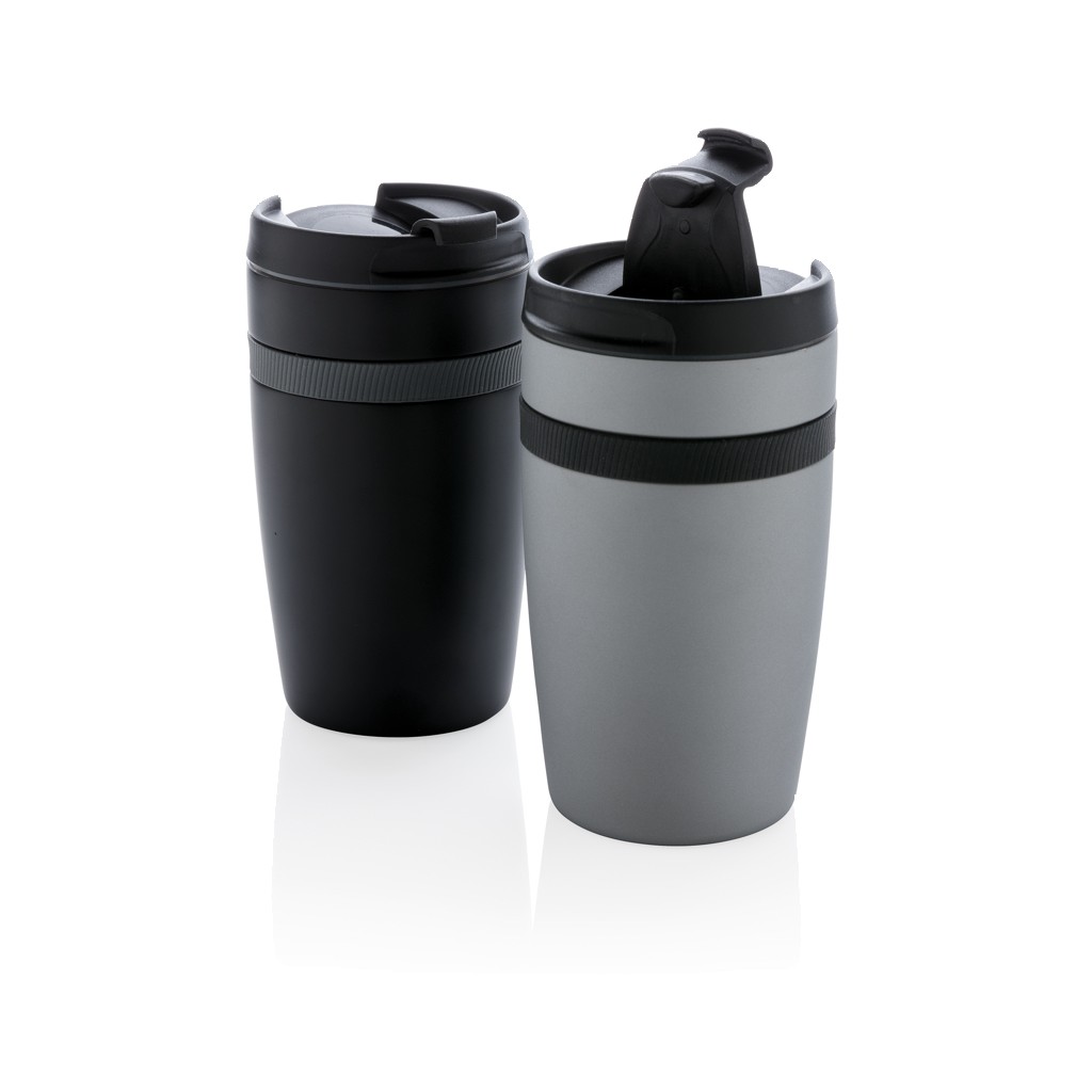 Mug 280ml à double paroi en acier inoxydable et une bande silicone de couleur. Taille idéale pour être placé sous la machine à café. Garde les boissons chaudes jusqu'à 5 h et froides jusqu'à 15h. Modèle déposé®