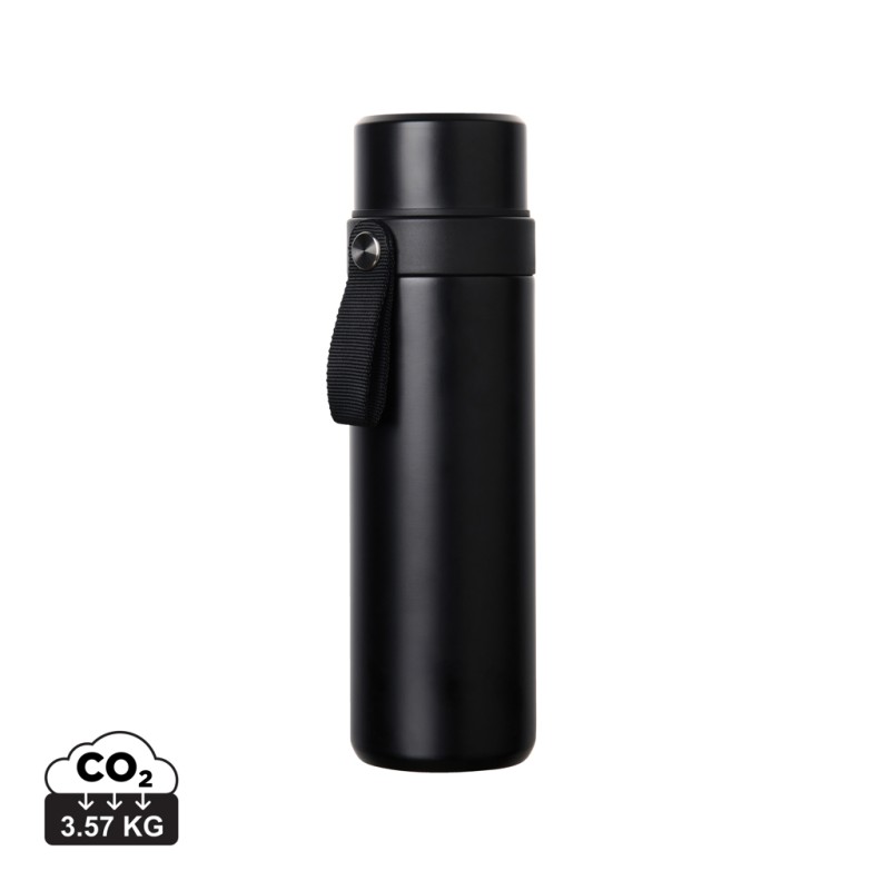 Partez à l'aventure avec Tono. Ce thermos allie un design élégant à une fonctionnalité intelligente. Grâce à son isolation sous vide à double paroi, il garde vos boissons froides jusqu'à 12 heures ou chaudes jusqu'à 6 heures. Le couvercle pratique peut être divisé en deux gobelets, ce qui est idéal pour partager une boisson chaude ou froide. La boucle de transport pratique permet de l'emporter facilement en voyage. Lavage à la main uniquement. Certifié par RCS (Recycled Claim Standard), la certification RCS garantit que l'ensemble de la chaîne d'approvisionnement en matériaux recyclés est certifiée. Le contenu recyclé total est basé sur le poids total du produit. Ce produit contient 24 % d'acier recyclé certifié RCS.