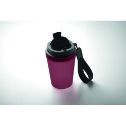 Gobelet simple paroi en PP, avec dragonne en polyester RPET. Anti fuite. Capacité : 300 ml. Comme il s'agit d'un gobelet à simple paroi, un transfert de chaleur peut encore se produire.