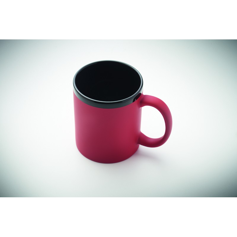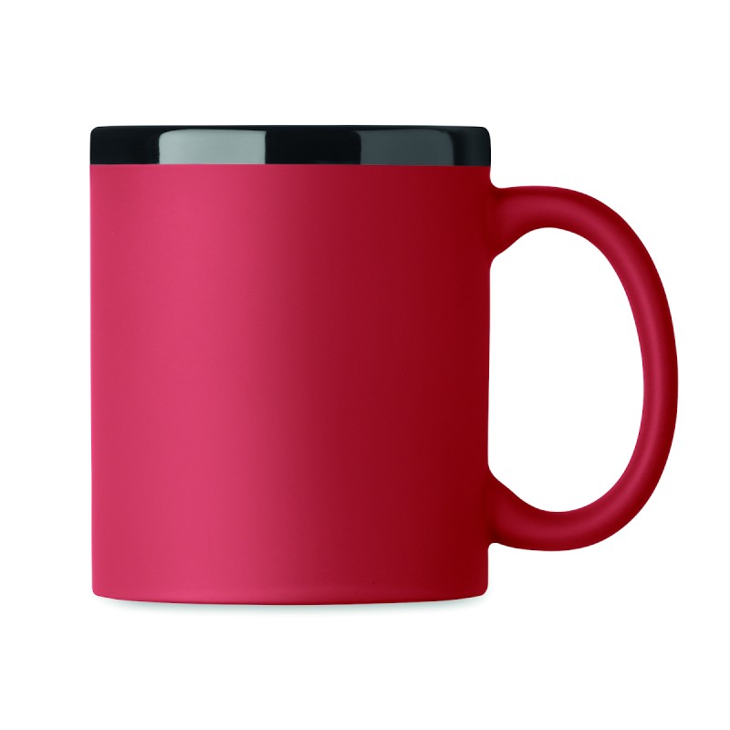 Mug en céramique avec revêtement au toucher doux et intérieur/bord noir. Idéal pour gravure laser. Emballage individuel dans une boîte en carton blanc. Capacité 300 ml.