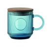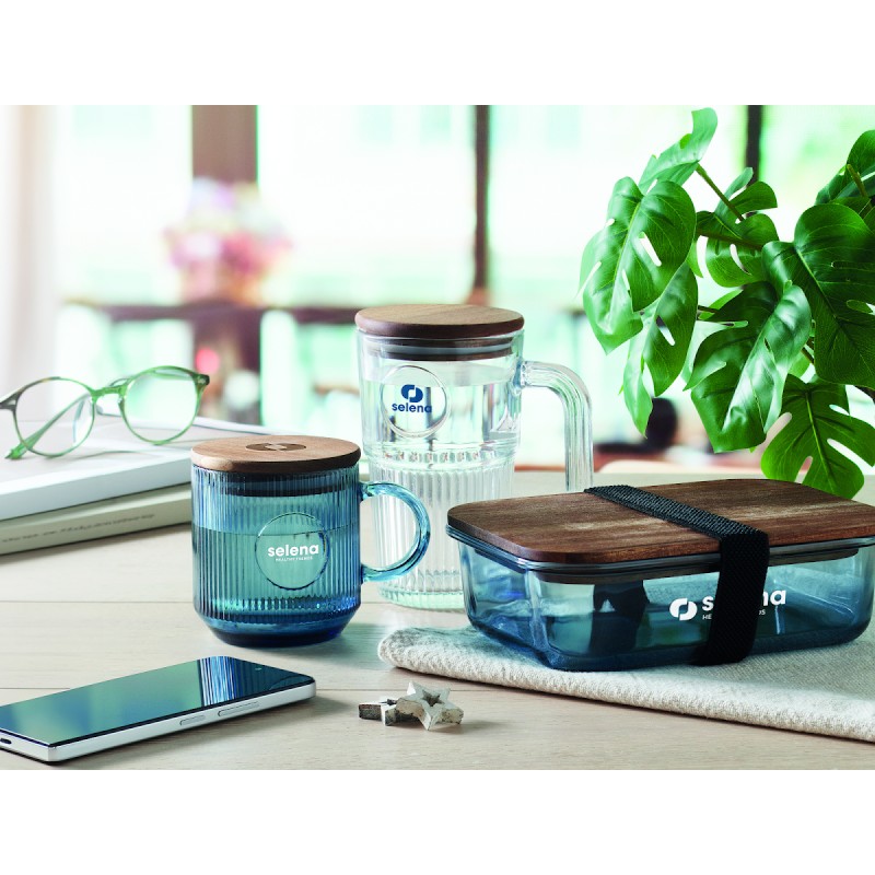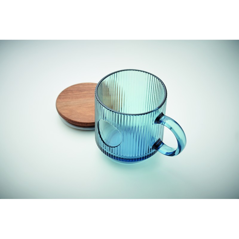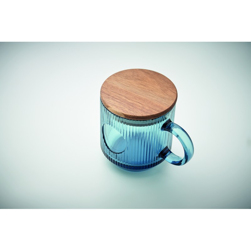 Mug en verre strié avec couvercle en acacia. 300 ml. FSC®-certified | FSC 100%, W16.3, FSC-C213206