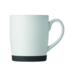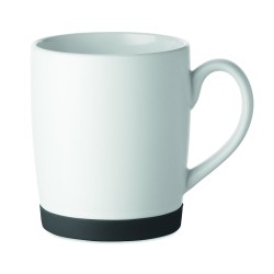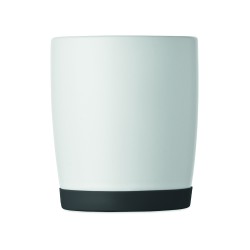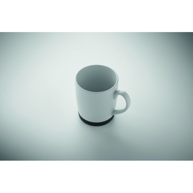 Mug en céramique avec finition blanche mate et base en silicone pour la stabilité. Capacité de 300 ml. Emballage individuel dans une boîte en carton blanc.