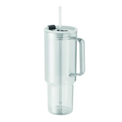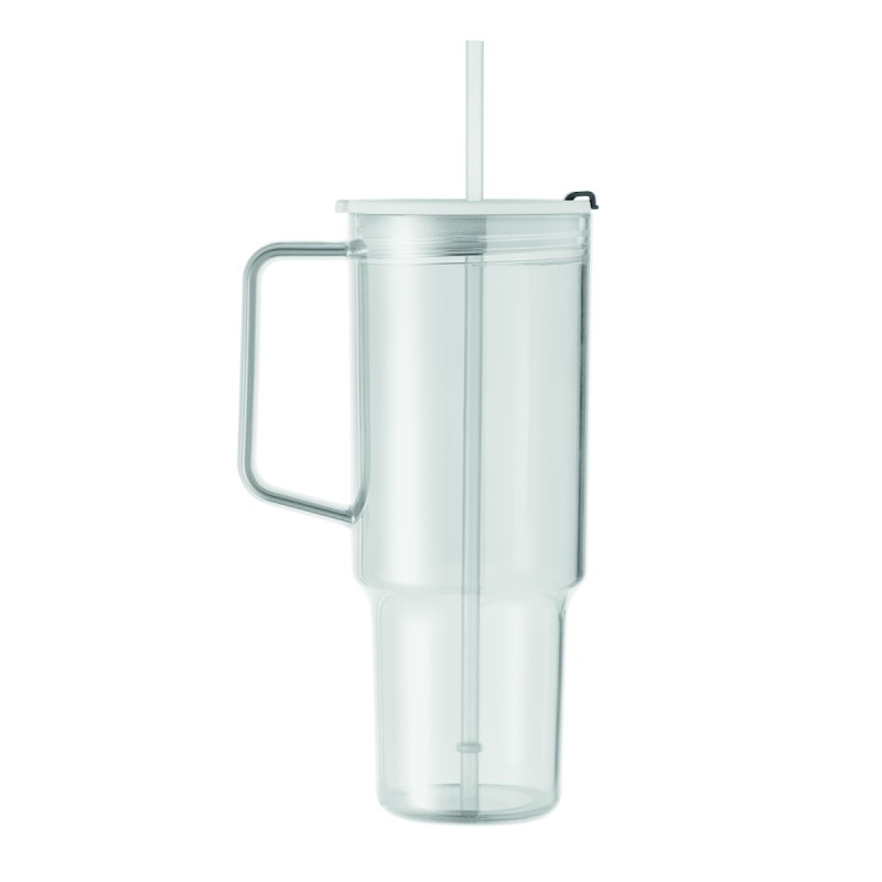 Gobelet en RPET avec couvercle en paille et paille en PP. Capacité : 1200 ml.