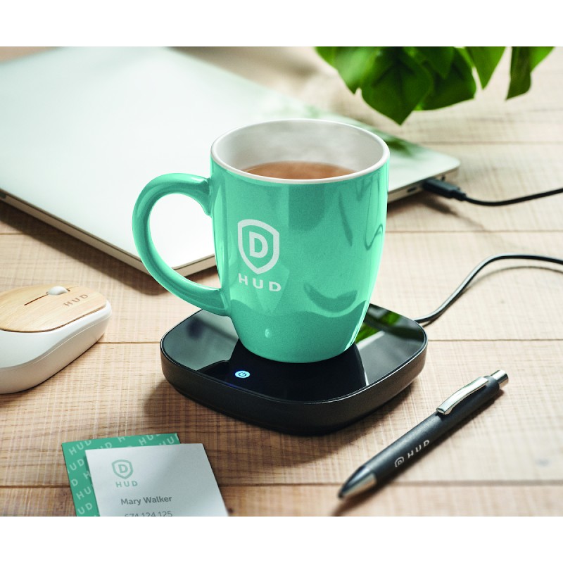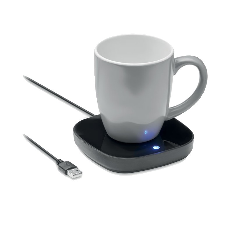 Chauffe-tasses en ABS. Garde les boissons au chaud jusqu'à 45°C maximum. Il dispose d'une connexion USB pour être branché.