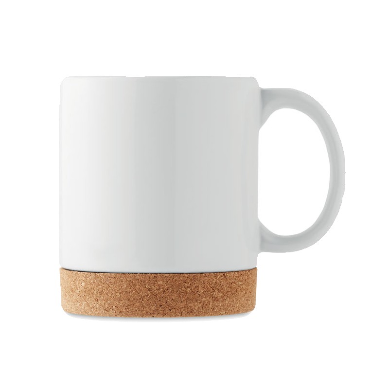 Mug en céramique avec base en liège. Capacité : 280 ml. Le liège est un matériau 100% naturel. En raison de sa structure et de la porosité de sa surface, le résultat final de l'impression par article peut présenter des différences.
