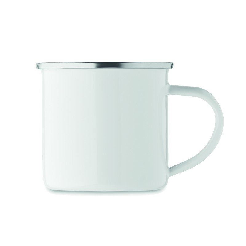 Mug vintage en métal avec couche d'émail idéal pour la sublimation. Capacité de 200 ml.