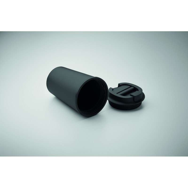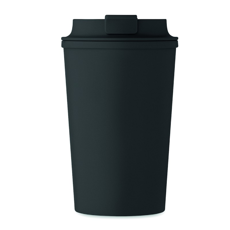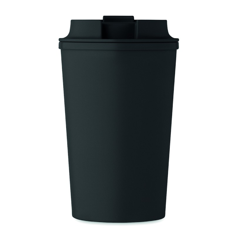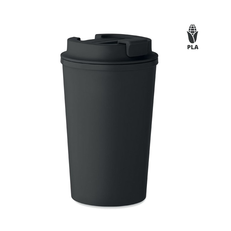 Gobelet double paroi en maïs 100% PLA avec couvercle en PP et intérieur en TPR. Anti fuite. Capacité : 350 ml.