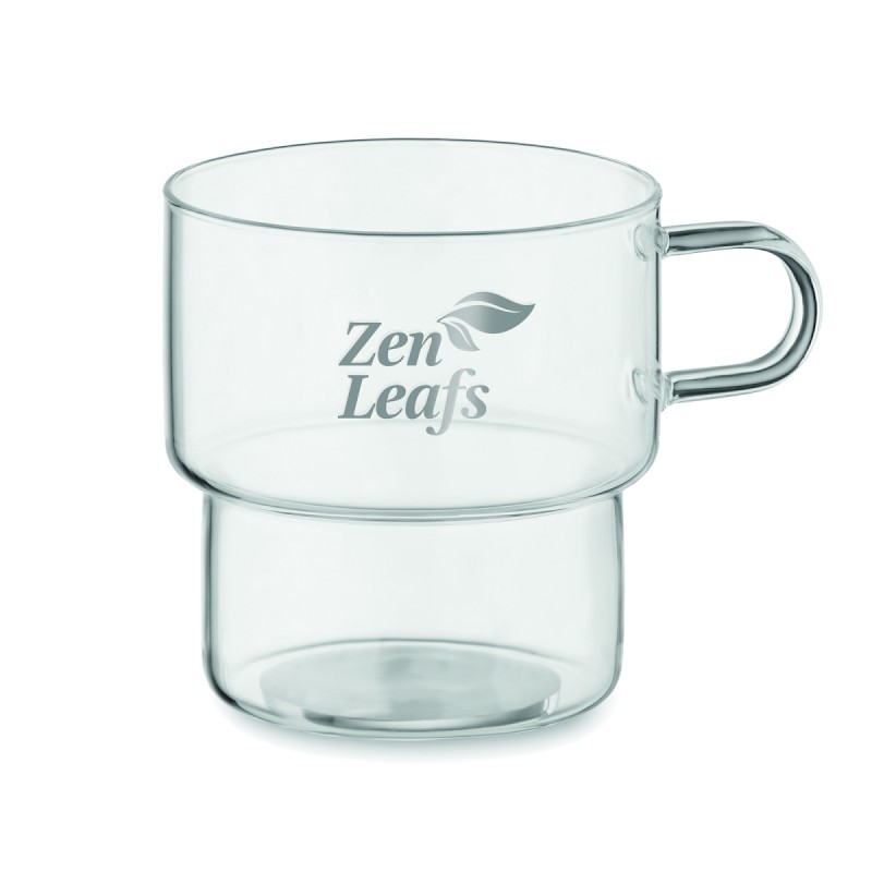 Tasse empilable en verre borosilicate de haute qualité. Capacité : 300 ml