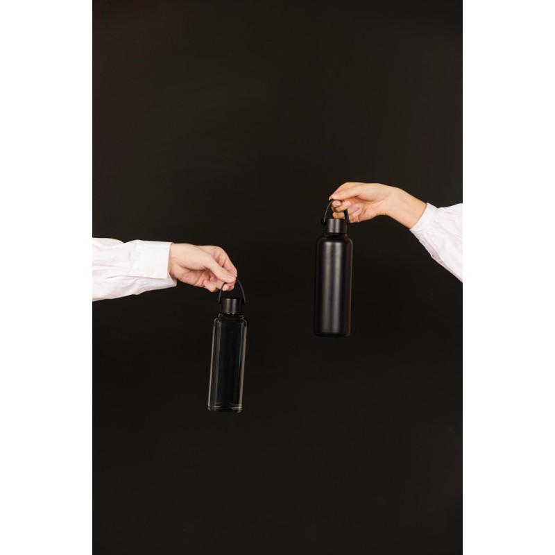 Bouteille sous vide à double paroi, fabriquée en acier inoxydable recyclé certifié RCS, offre à la fois performance et style. Conçue avec une poignée minimaliste en PU et des détails noirs qui capturent l'essence de la série Baltimore. L'isolation à double paroi maintient la température des boissons froides jusqu'à 12 heures, et chaudes jusqu'à 6 heures, que vous ayez besoin de rester au frais avec une boisson réfrigérée ou de déguster une boisson chaude lors de vos déplacements. Ne passe ni au lave-vaisselle ni au micro-ondes, mais se lave uniquement à la main. Certifié par RCS (Recycled Claim Standard), la certification RCS garantit que l'ensemble de la chaîne d'approvisionnement en matériaux recyclés est certifiée. Le contenu recyclé total est basé sur le poids total du produit. Ce produit contient 80 % d'acier inoxydable recyclé certifié RCS.