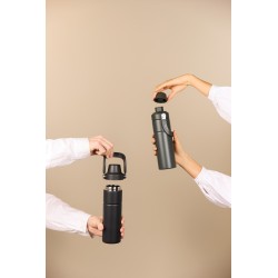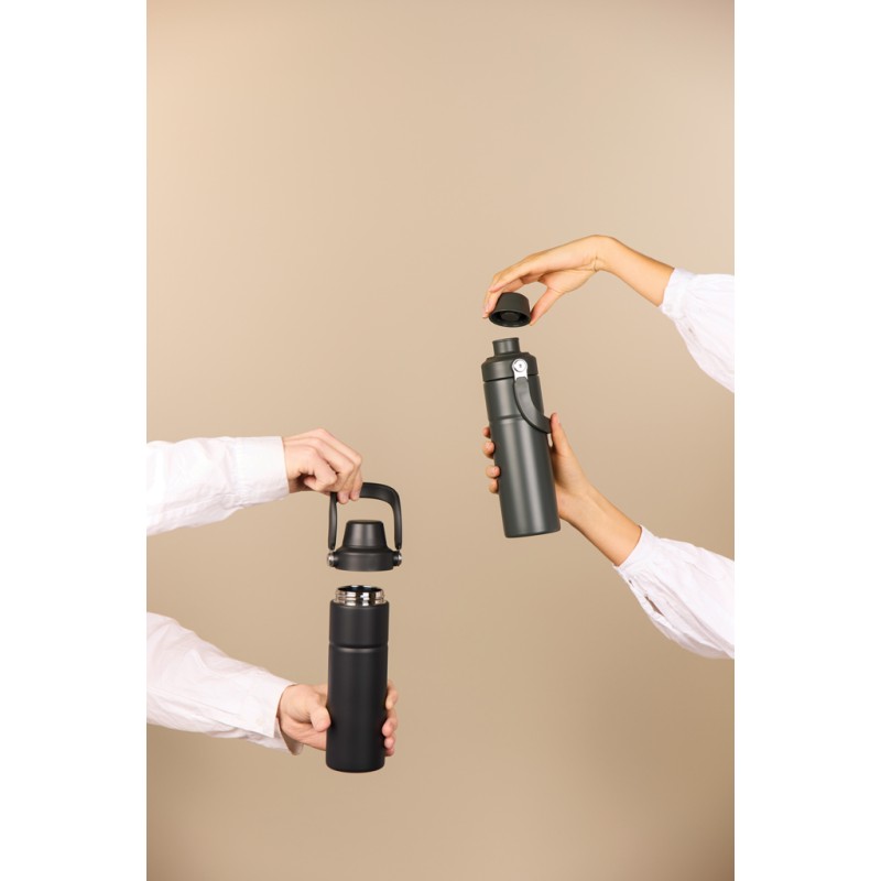 Bouteille sous vide à double paroi, moderne et durable, fabriquée à partir d'acier inoxydable recyclé. Parfaitement conçue pour la fonctionnalité avec sa poignée pratique, cette bouteille est idéale pour les aventures. Le couvercle est doté de deux ouvertures : une partie supérieure pour un accès facile et une ouverture plus large pour des remplissages sans effort et un nettoyage facile. L'isolation à double paroi garde votre boisson froide jusqu'à 12 heures et chaude jusqu'à 4 heures, ce qui vous permet de vous rafraîchir tout au long de votre voyage. Ne passe pas au lave-vaisselle ni au micro-ondes, mais seulement à la main. Certifié par RCS (Recycled Claim Standard), la certification RCS garantit que l'ensemble de la chaîne d'approvisionnement en matériaux recyclés est certifiée. Le contenu recyclé total est basé sur le poids total du produit. Ce produit contient 65 % d'acier inoxydable recyclé certifié RCS.