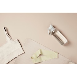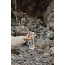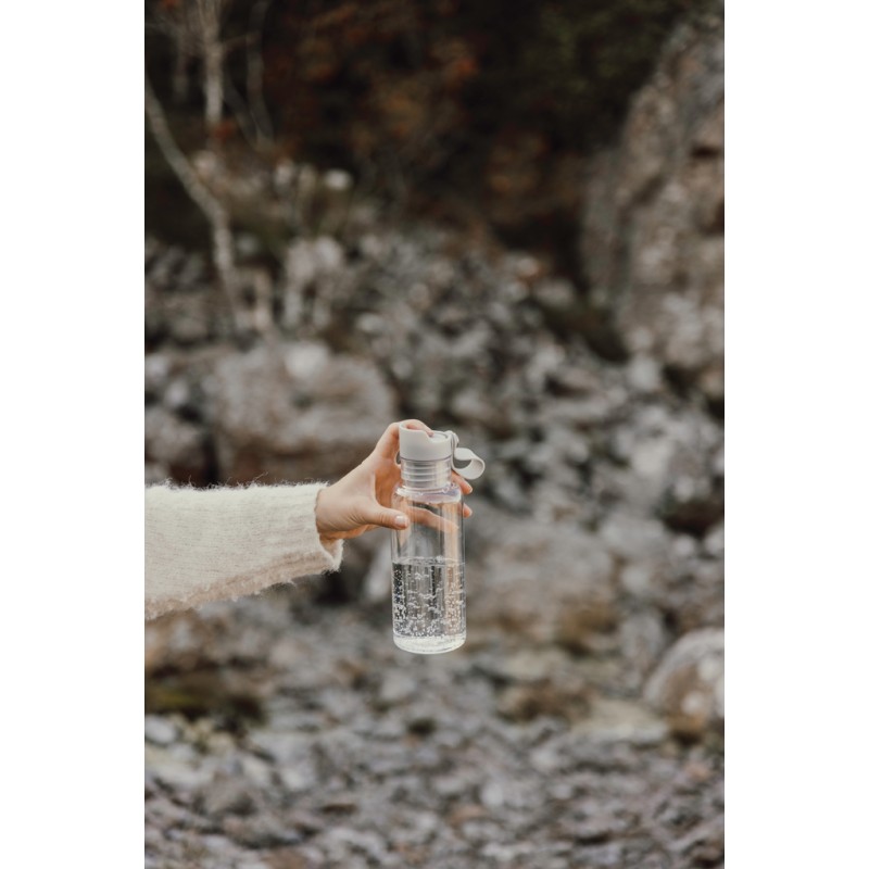 Bouteille idéale pour une utilisation quotidienne. Le dessus à bouton-poussoir permet une utilisation facile en déplacement. Fabriqué à partir de PET recyclé, cet article contient un total de 63 % de contenu recyclé sur la base de son poids total. Lavage à la main uniquement, convient exclusivement aux boissons froides. Livrée dans une boite en kraft certifié FSC®.