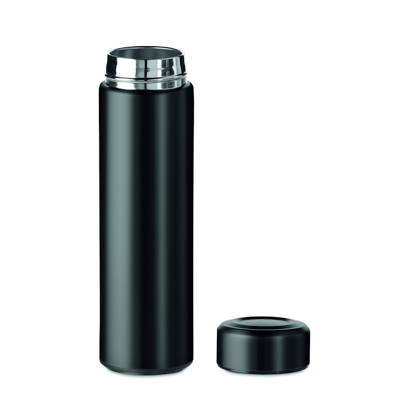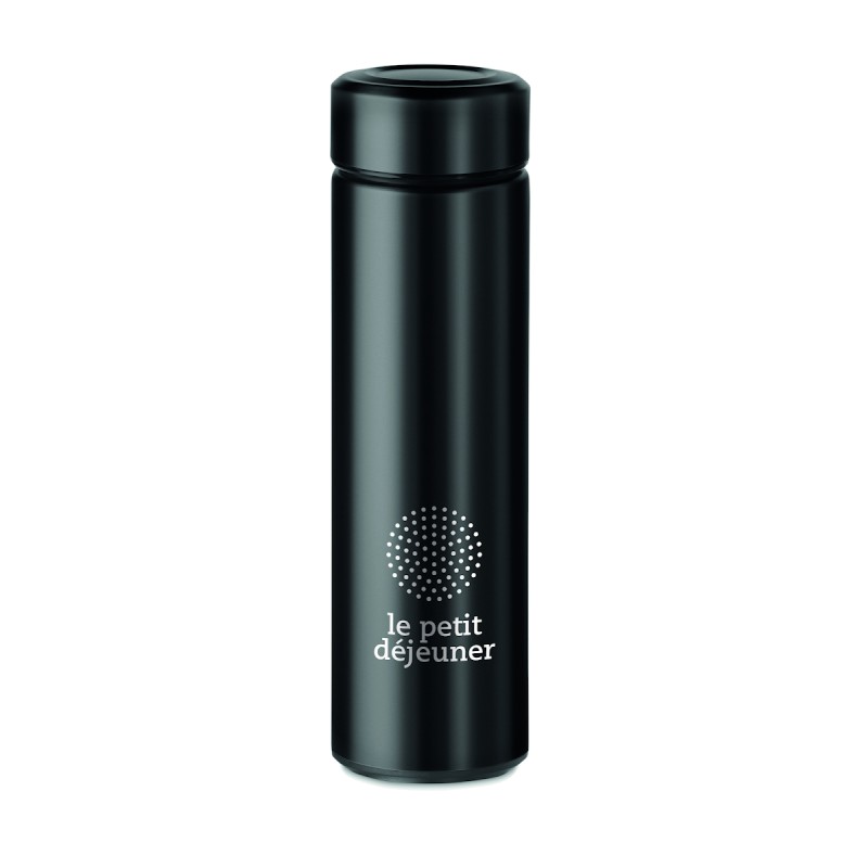 Gourde à vide isolant en acier inoxydable à double paroi avec infuseur de thé supplémentaire. Contenance 425 ml. Anti fuite.