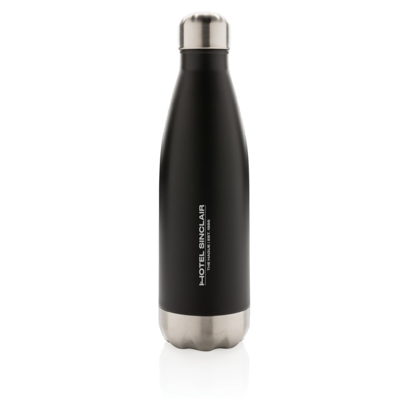 Bouteille 500ml en acier inoxydable avec vide d’air. Garde le chaud jusqu’à 5h et le froid jusqu’à 15h.