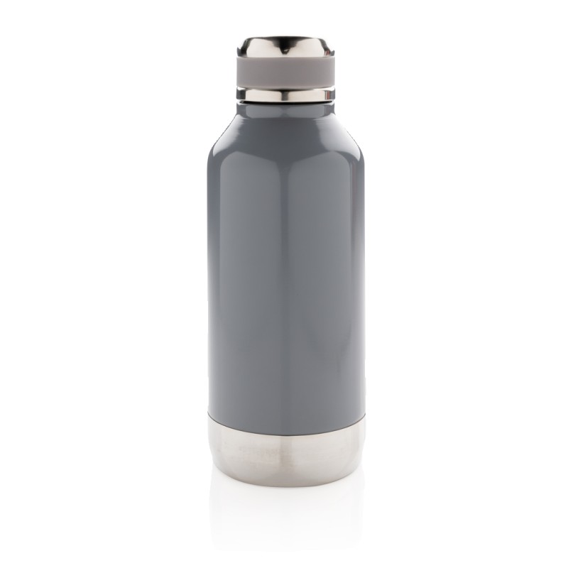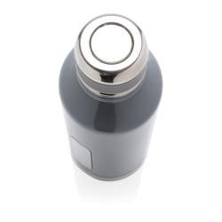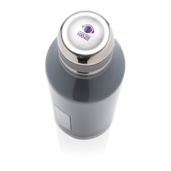 Bouteille étanche 500ml à double paroi en acier inoxydable, extérieur en 201 et intérieur en 304. Couvercle à visser. Plaque sur le devant de la bouteille pour y mettre le logo. Garde les boissons chaudes 5h et froides 15h.