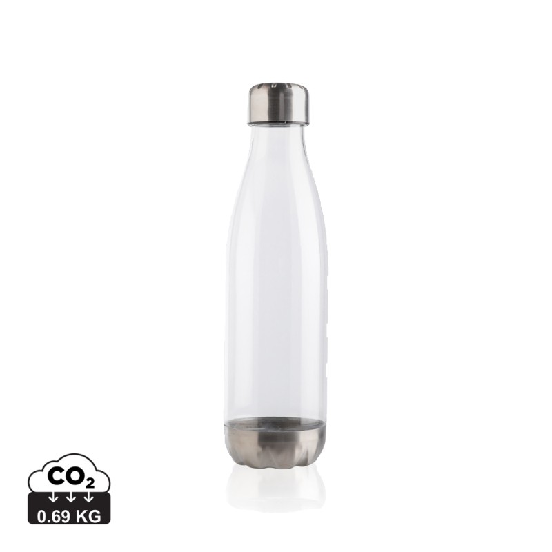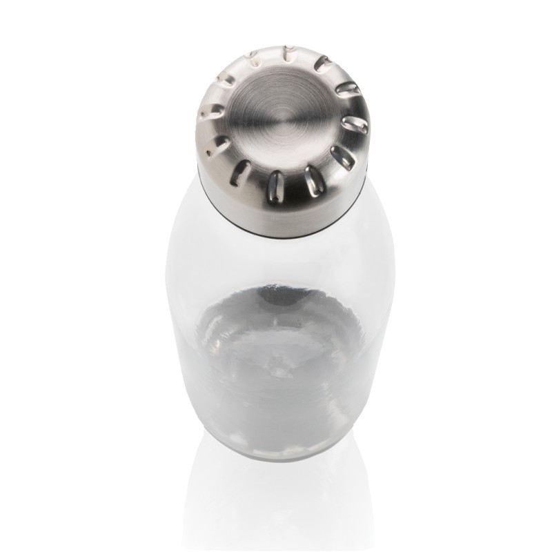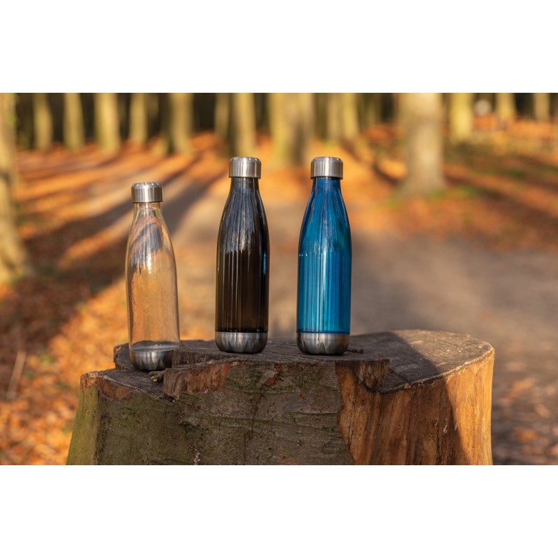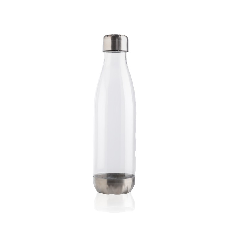 Bouteille étanche avec couvercle et fond en acier inoxydable. Corps transparent en PETG (polyéthylène téréphtalate glycol). Diamètre idéal pour la majorité des porte-gobelets. Capacité 500 ml. Sans BPA.