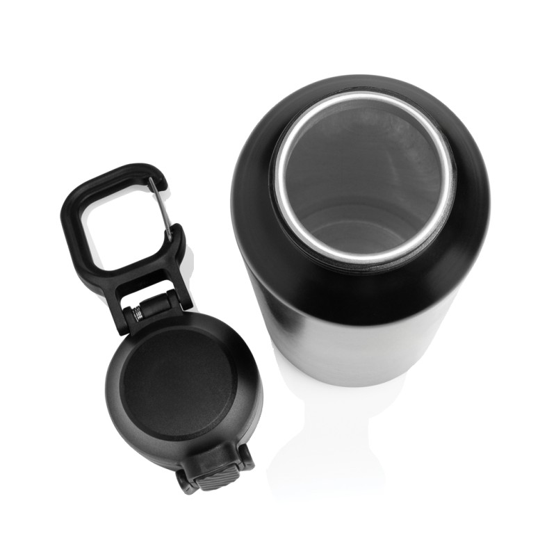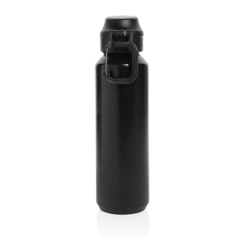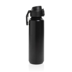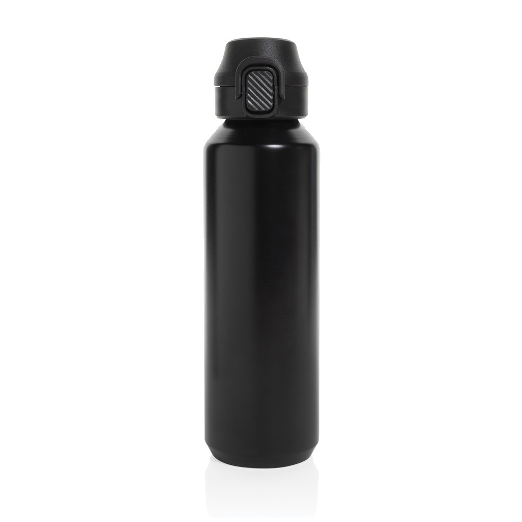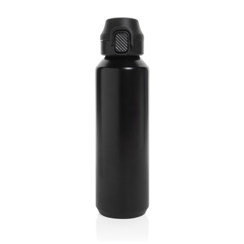 La bouteille Via est fabriquée à partir d'acier inoxydable. Cette bouteille d'eau est dotée d'une paroi simple et d'un couvercle anti-fuite unique, vissable et verrouillable. Utilisation d'une seule main. Appuyez pour ouvrir le couvercle et boire facilement. Ne peut être utilisée que pour des boissons froides. La certification RCS garantit une chaîne d'approvisionnement entièrement certifiée pour les matériaux recyclés. Contenu recyclé total : 73 % sur la base du poids total de l'article. Emballée en vrac. Capacité de 600 ml.