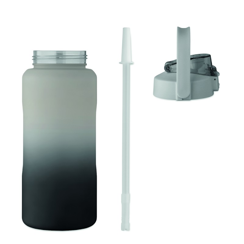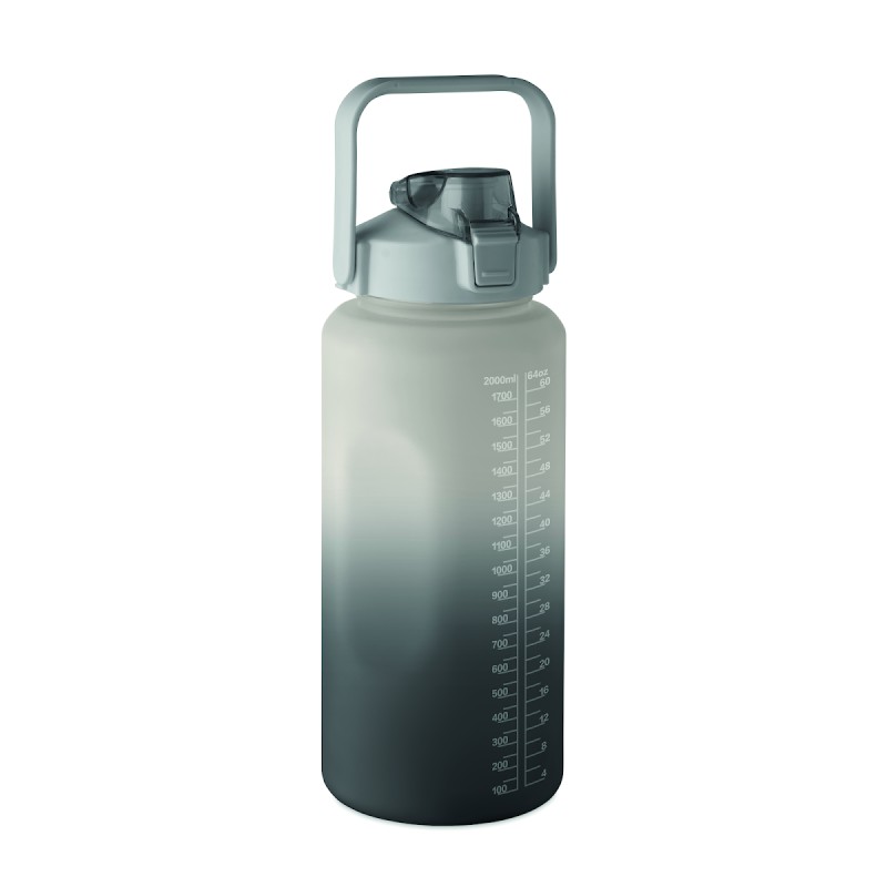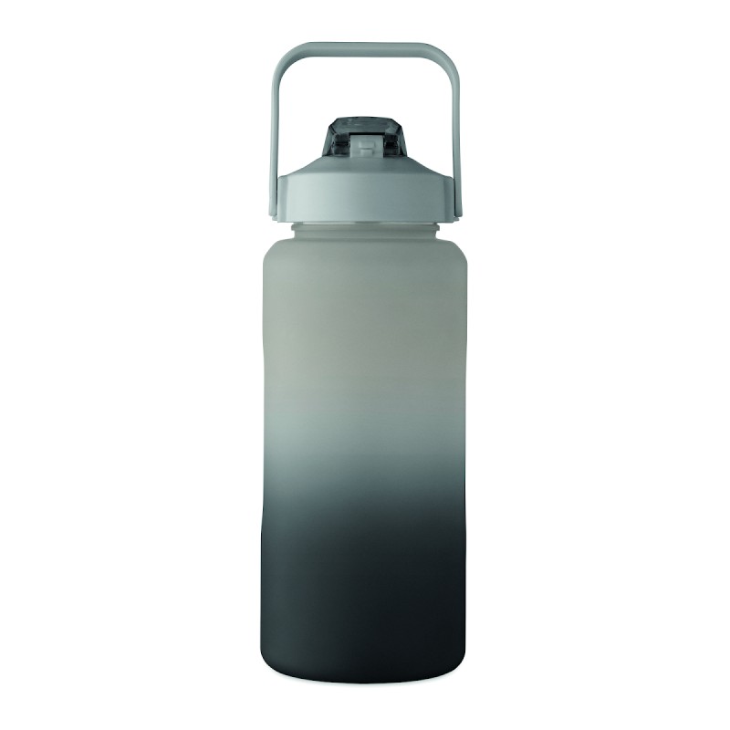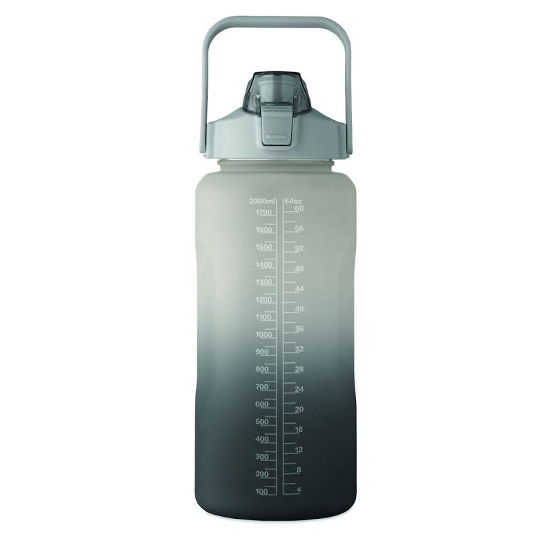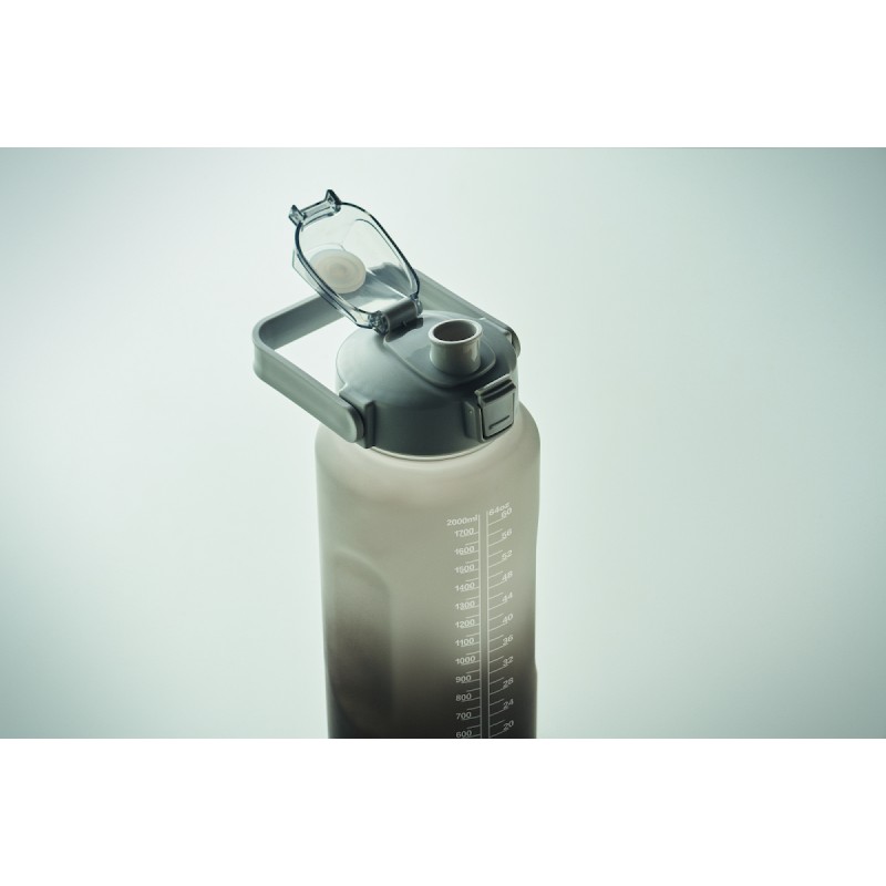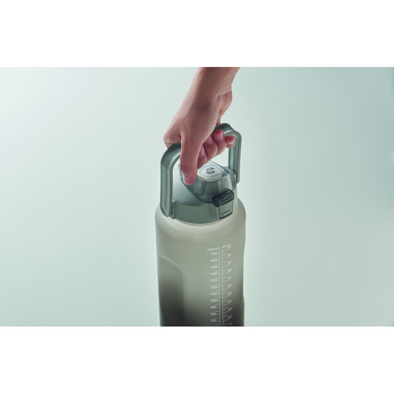 Bouteille d'eau de motivation en RPET. Comprend un couvercle à ouverture d'une seule main avec paille, un verrou de sécurité et une poignée. Anti fuite. Capacité : 2L.
