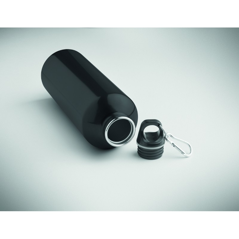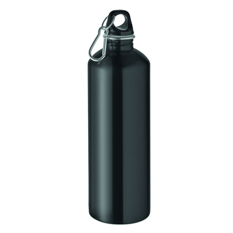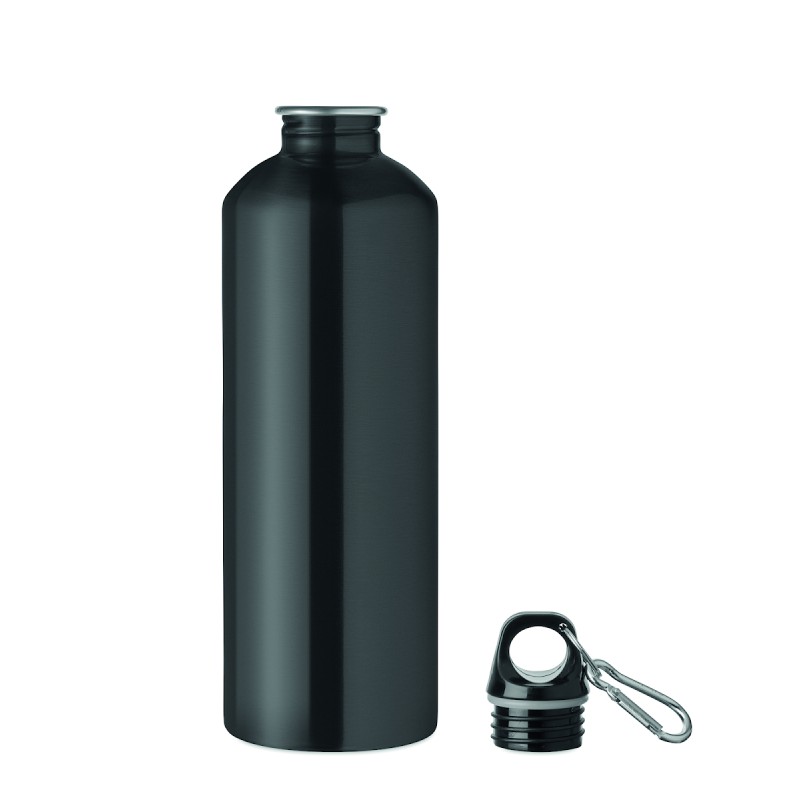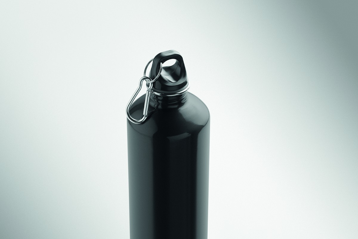 Bouteille à simple paroi (90 % d'acier inoxydable recyclé et 10 % d'acier inoxydable) avec couvercle en PP et mousqueton. Capacité de 1000 ml. Comme il s'agit d'une bouteille à simple paroi, un transfert de chaleur peut encore se produire.