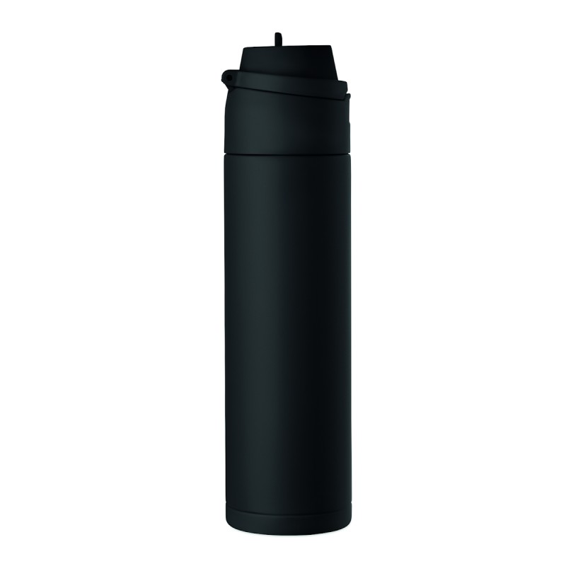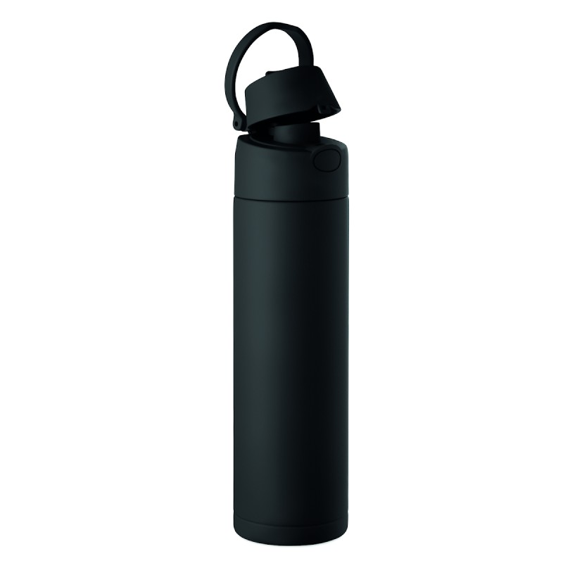 Bouteille en acier inox recyclé à simple paroi (90 % d'acier inox recyclé et 10 % d'acier inox). Comprend une paille 2-en-1 et un couvercle en PP avec poignée. Anti fuite. Capacité :650 ml.
