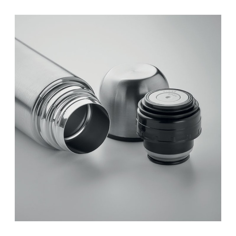 Bouteille à double paroi en acier inoxydable recyclé (90 % d'acier inoxydable recyclé et 10 % d'acier inoxydable). Anti fuite. Capacité : 500 ml.