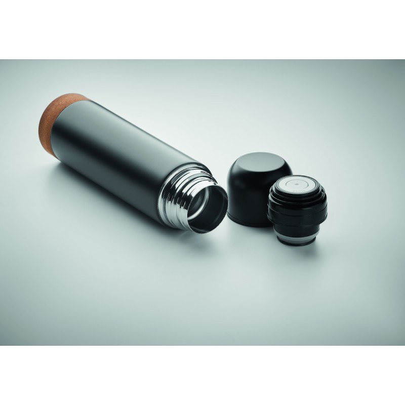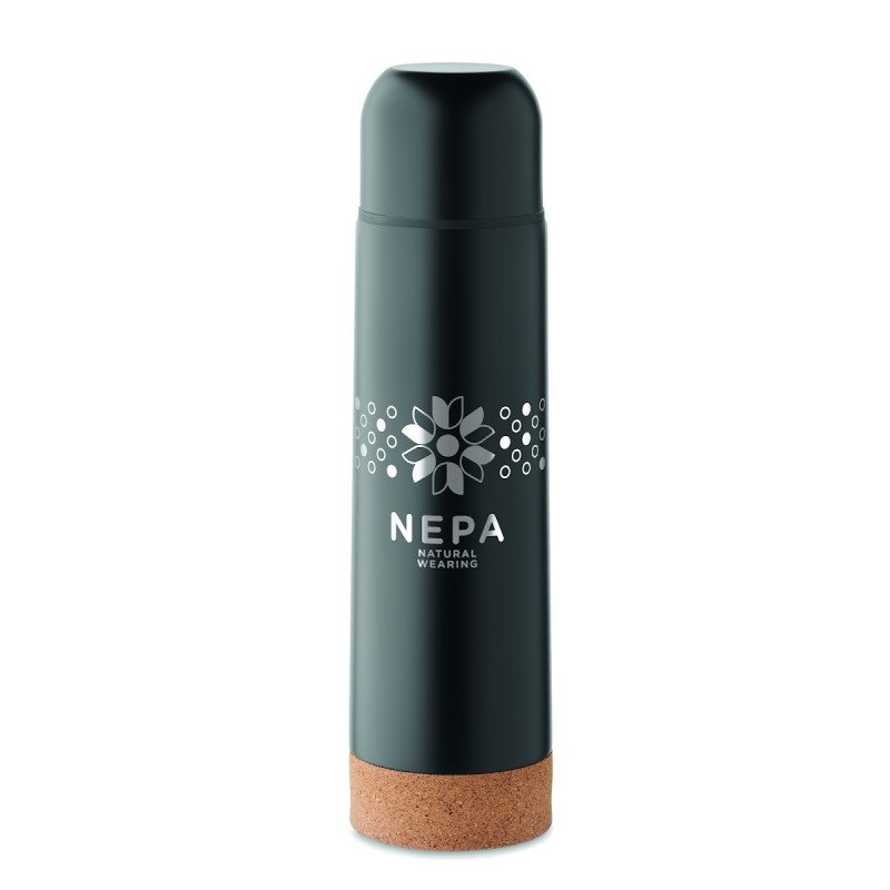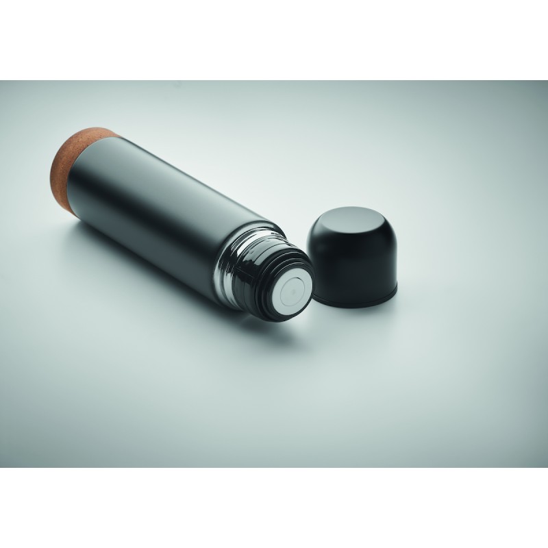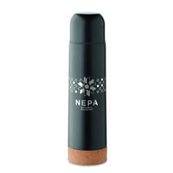 Bouteille à double paroi à vide isolant en acier inoxydable recyclé avec base en liège. Anti fuite. Capacité : 500 ml. (90 % d'acier inoxydable recyclé et 10 % d'acier inoxydable).