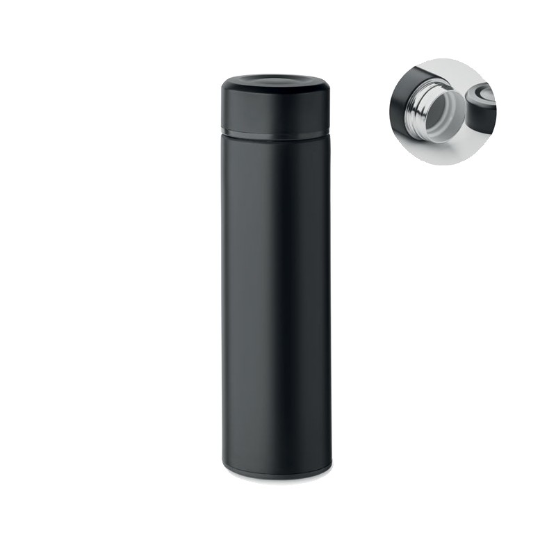 Bouteille isolante sous vide à double paroi en acier inoxydable recyclé (90 % d'acier inoxydable recyclé et 10 % d'acier inoxydable) avec en céramique revêtement intérieur. Anti fuite. Capacité : 420 ml.