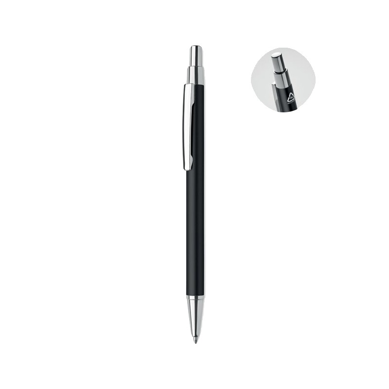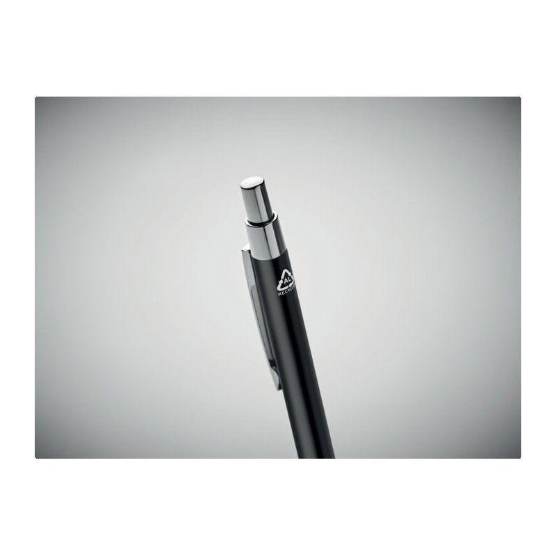 Stylo bille à bouton poussoir en aluminium recyclé. Encre bleue.