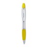 Stylo bille et surligneur, finition satinée argent et accessoires chromés. Encre bleue.