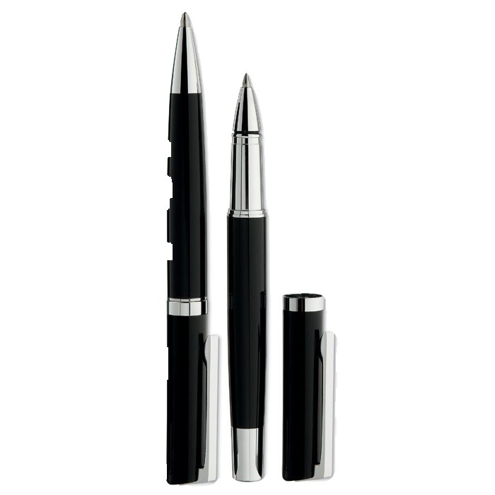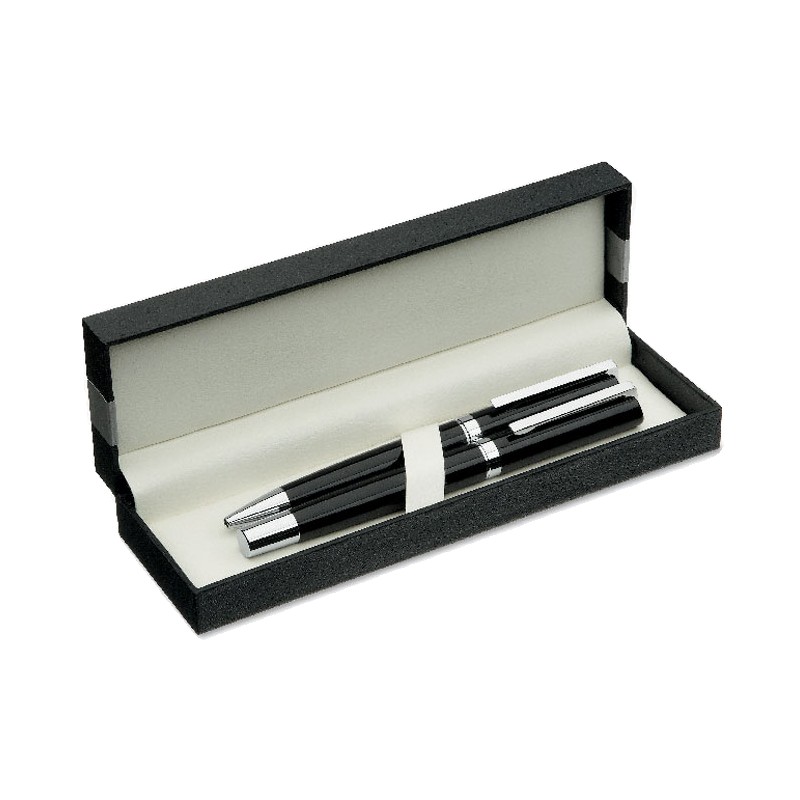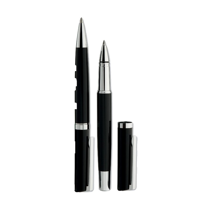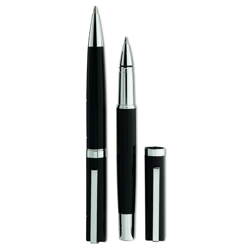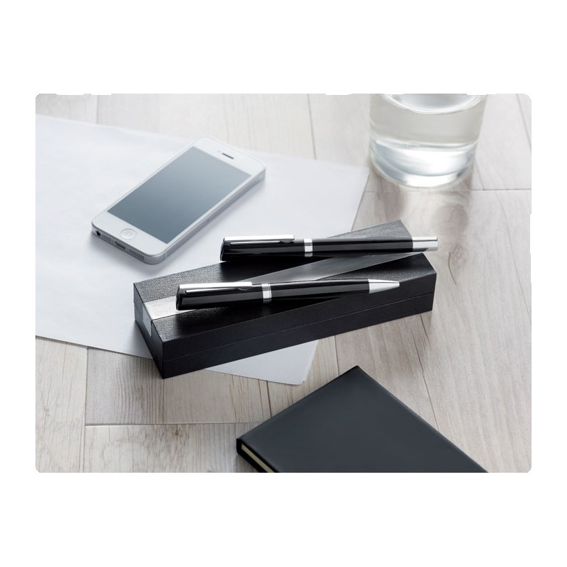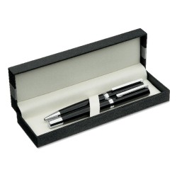 Set d'écriture présenté en coffret cadeau. Stylo à bille twist et roller. Encre bleue.