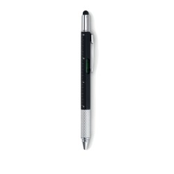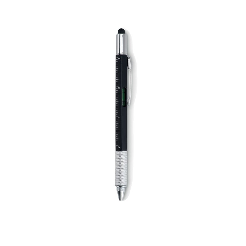 Stylo twist à niveau en ABS avec règle et stylet. Encre noire. Comprend également deux têtes de tournevis ( plat et cruciforme)