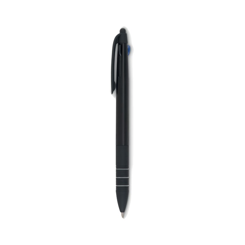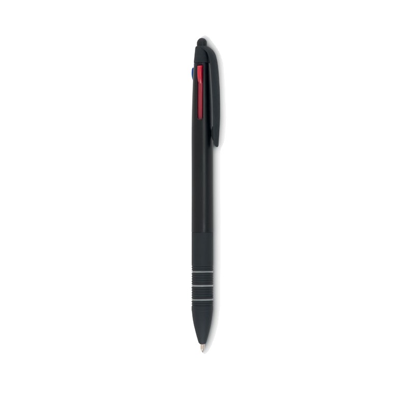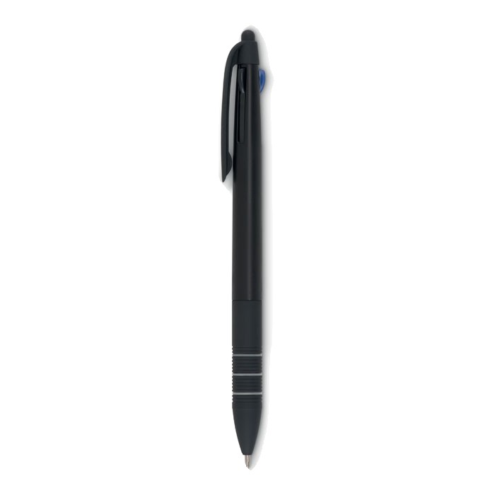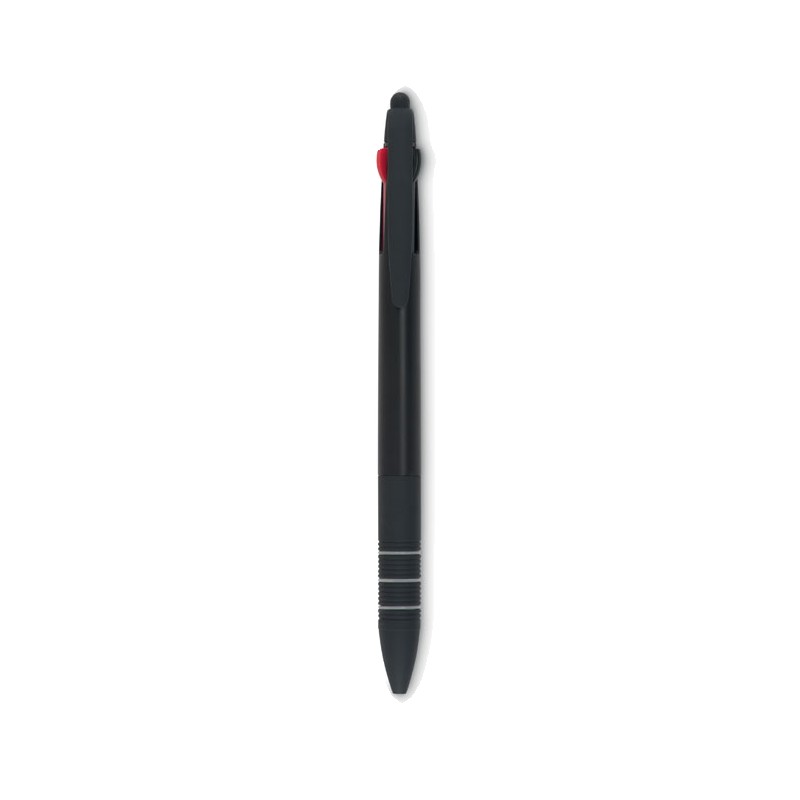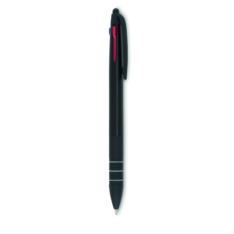 Stylo bille 3 couleurs avec stylet en ABS . Encres rouge, bleue et noire.
