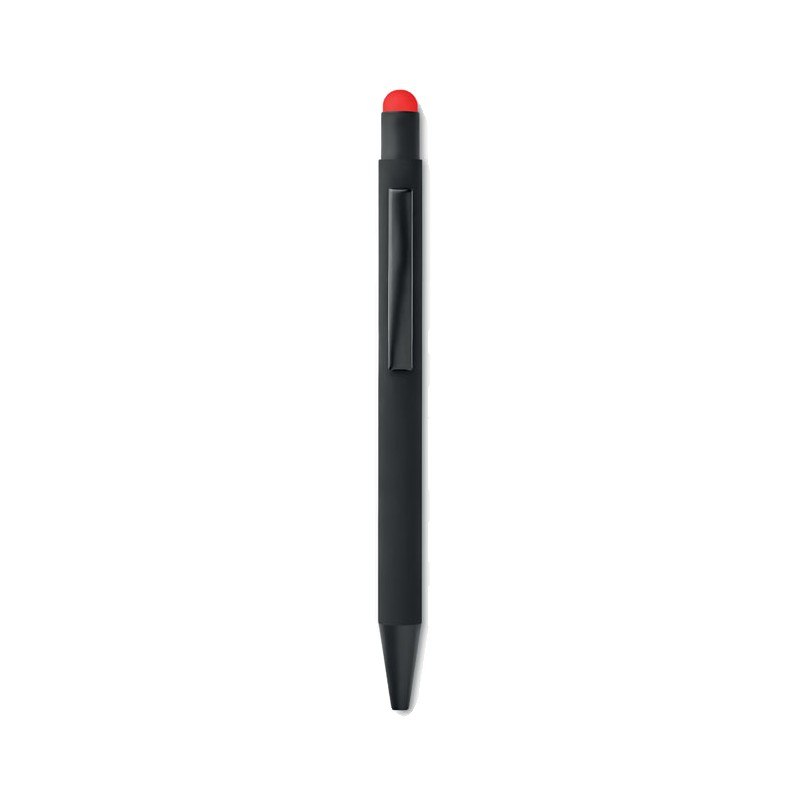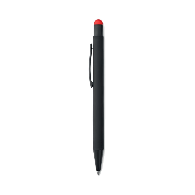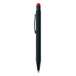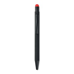 Stylo poussoir stylet en aluminium. Le corps du stylo a une couleur en sous couche qui correspond au stylet après la gravure au laser. Encre bleue.