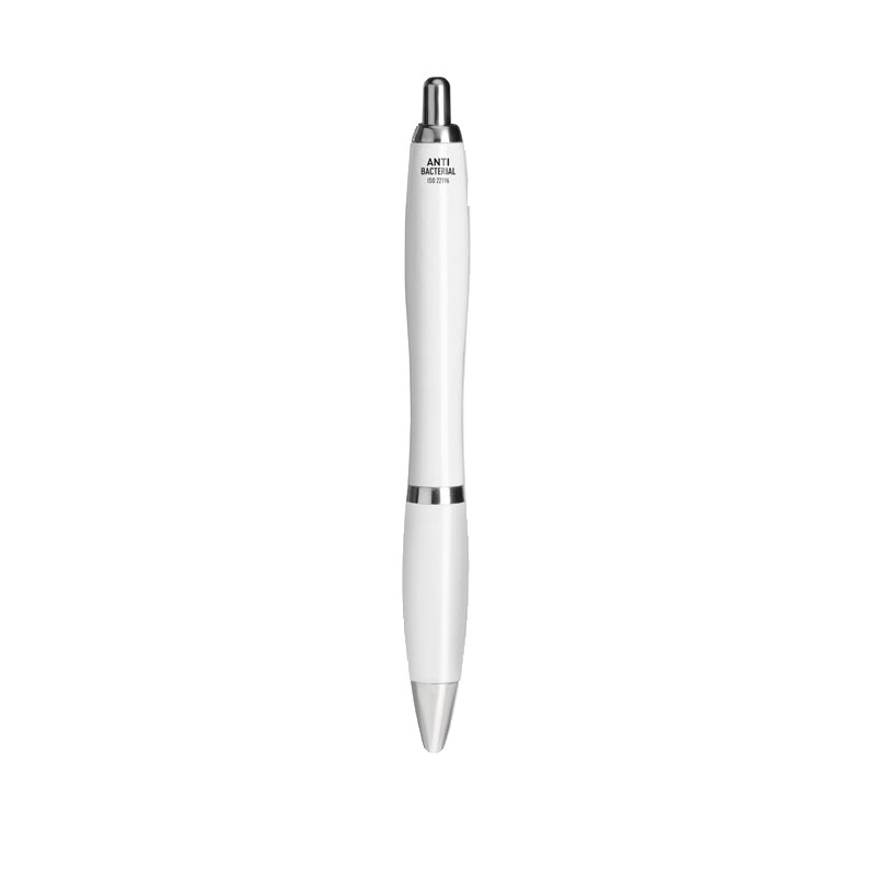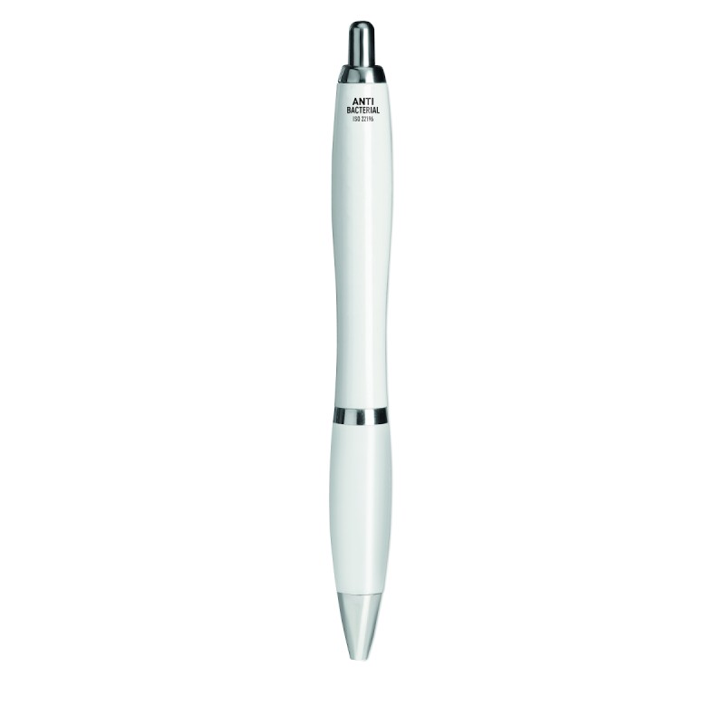 Stylo bille en ABS à bouton-poussoir avec corps antibactérien. Cet article contient un additif spécial (nano argent) qui empêche les bactéries de coloniser la surface du stylo. ISO 22196. Encre bleue.