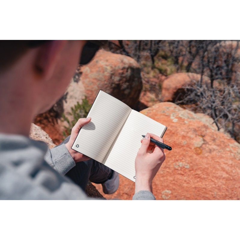 Stylo fabriqué à partir de fibre de paille de blé récolté (composition : 60% de paille de blé et 40% ABS), ce qui le rend durable. Encre bleue Dokumental® de fabrication allemande pour +/- 1200m d’écriture et bille en carbure de tungstene assurant une écriture régulière.