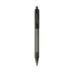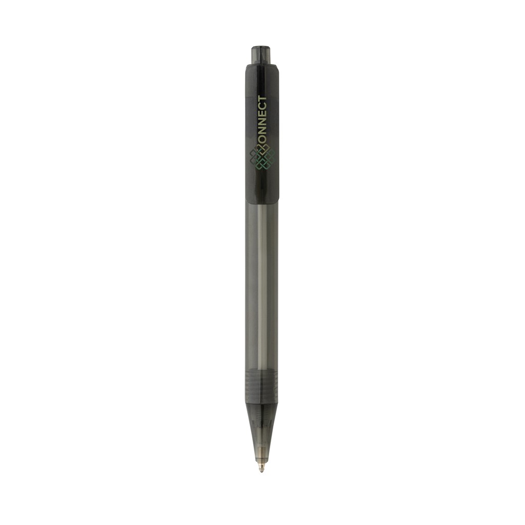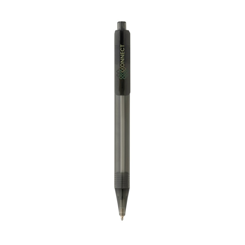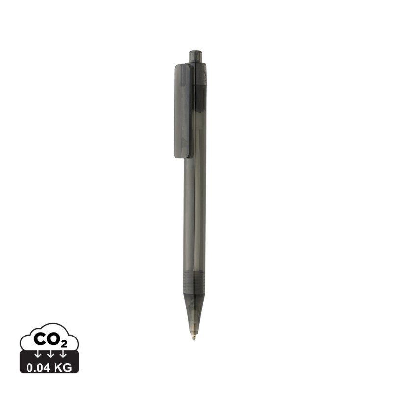 Un nouveau membre de la famille des stylos X. Fabriqué avec des matériaux recyclés certifiés GRS (Global Recycle Standard). La certification GRS garantit une chaîne d'approvisionnement entièrement certifiée pour les matériaux recyclés. Parfait pour communiquer le message de votre marque. Comprend une longueur d'écriture d'environ 1200 m. Recharge d'encre bleue allemande Dokumental® avec bille TC pour une écriture ultra douce.