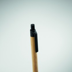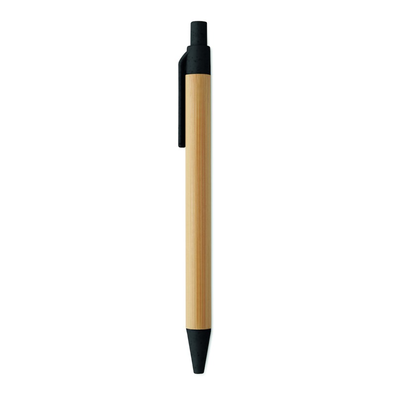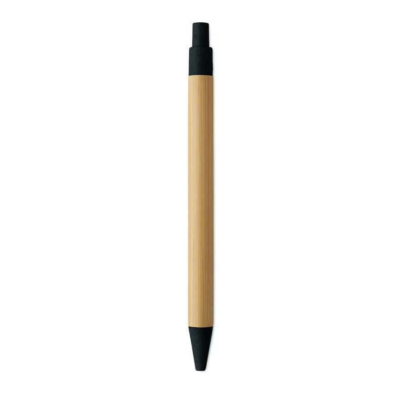 Stylo à bille à bouton poussoir avec corps en bambou et paille de blé (50%) et en plastique ABS (50%). Encre bleue.