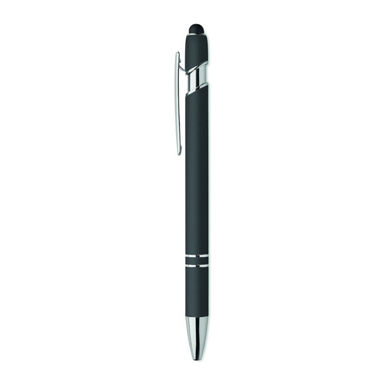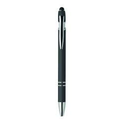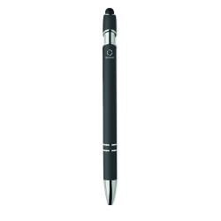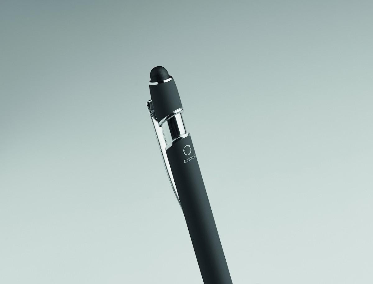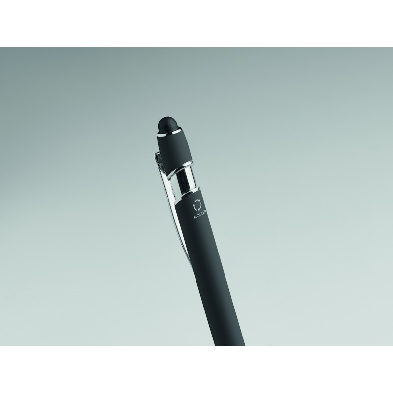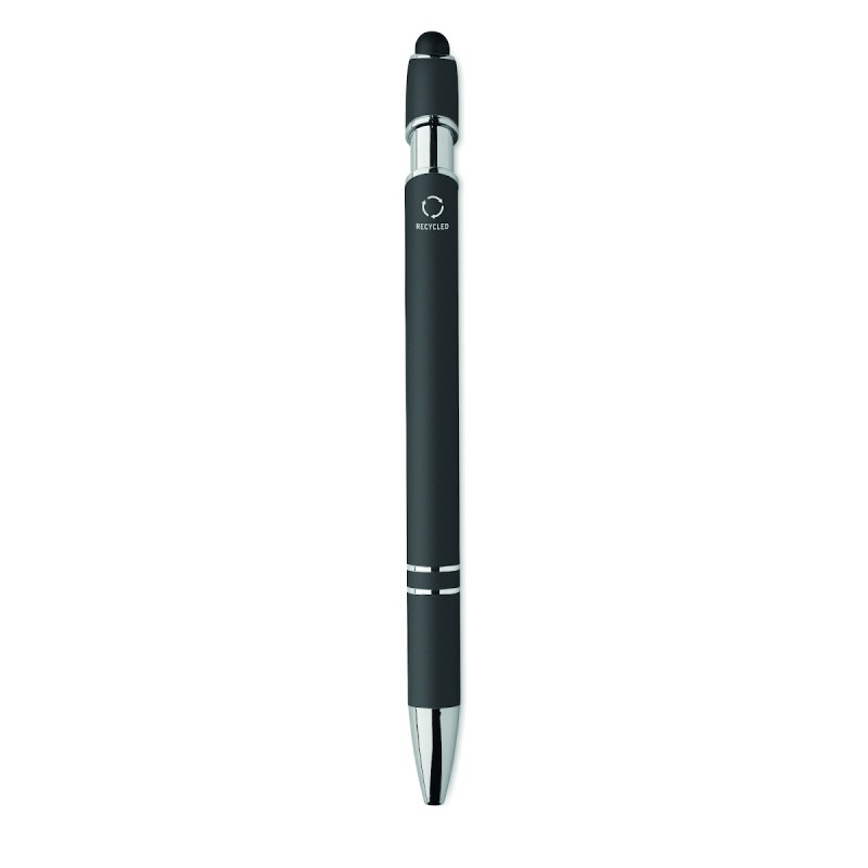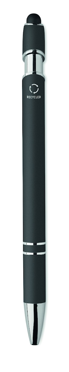 Stylo bille à poussoir en aluminium recyclé. Toucher gomme. Encre bleue.